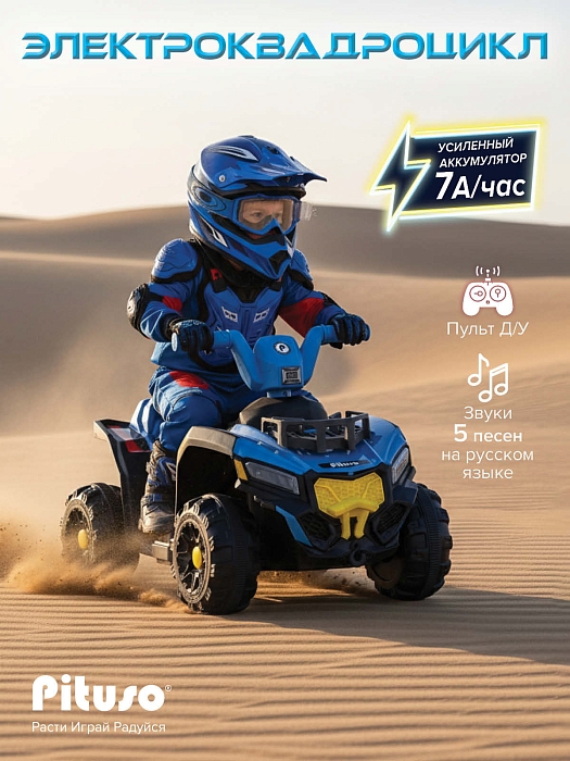 Электроквадроцикл Pituso с пультом управления 6V/7Ah,20W*1 Blue/Голубой