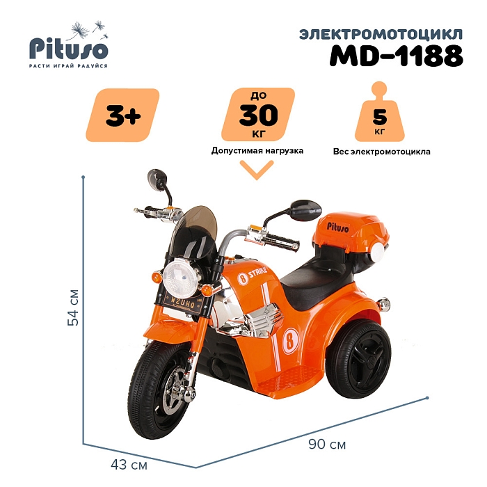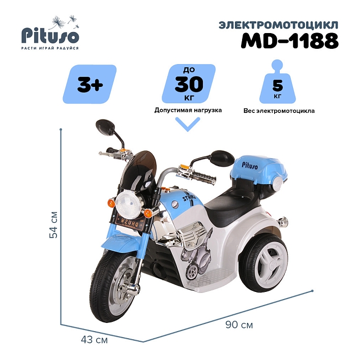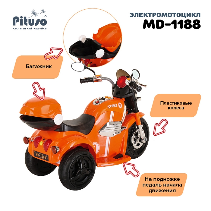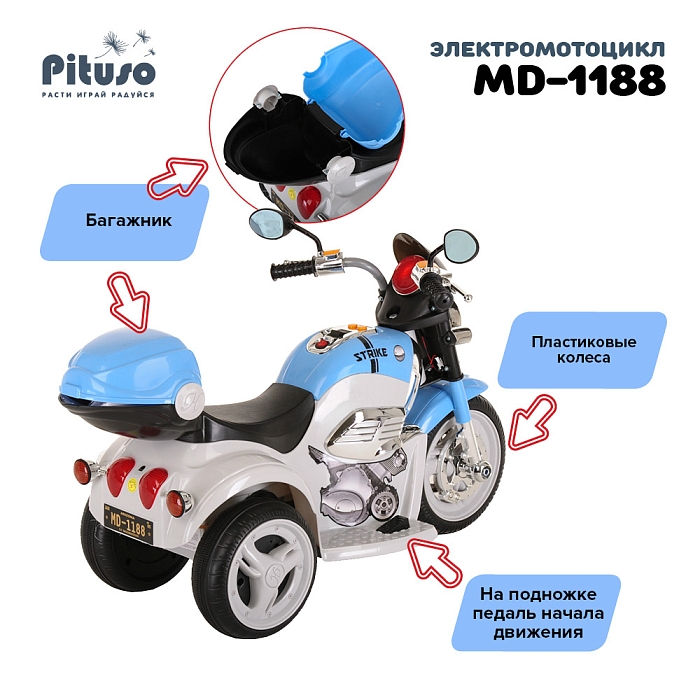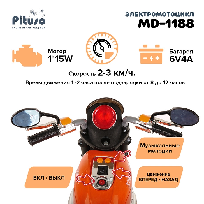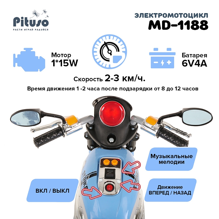 Детский электромотоцикл Pituso MD-1188 - достаточно маневренный и легкий в управлении.