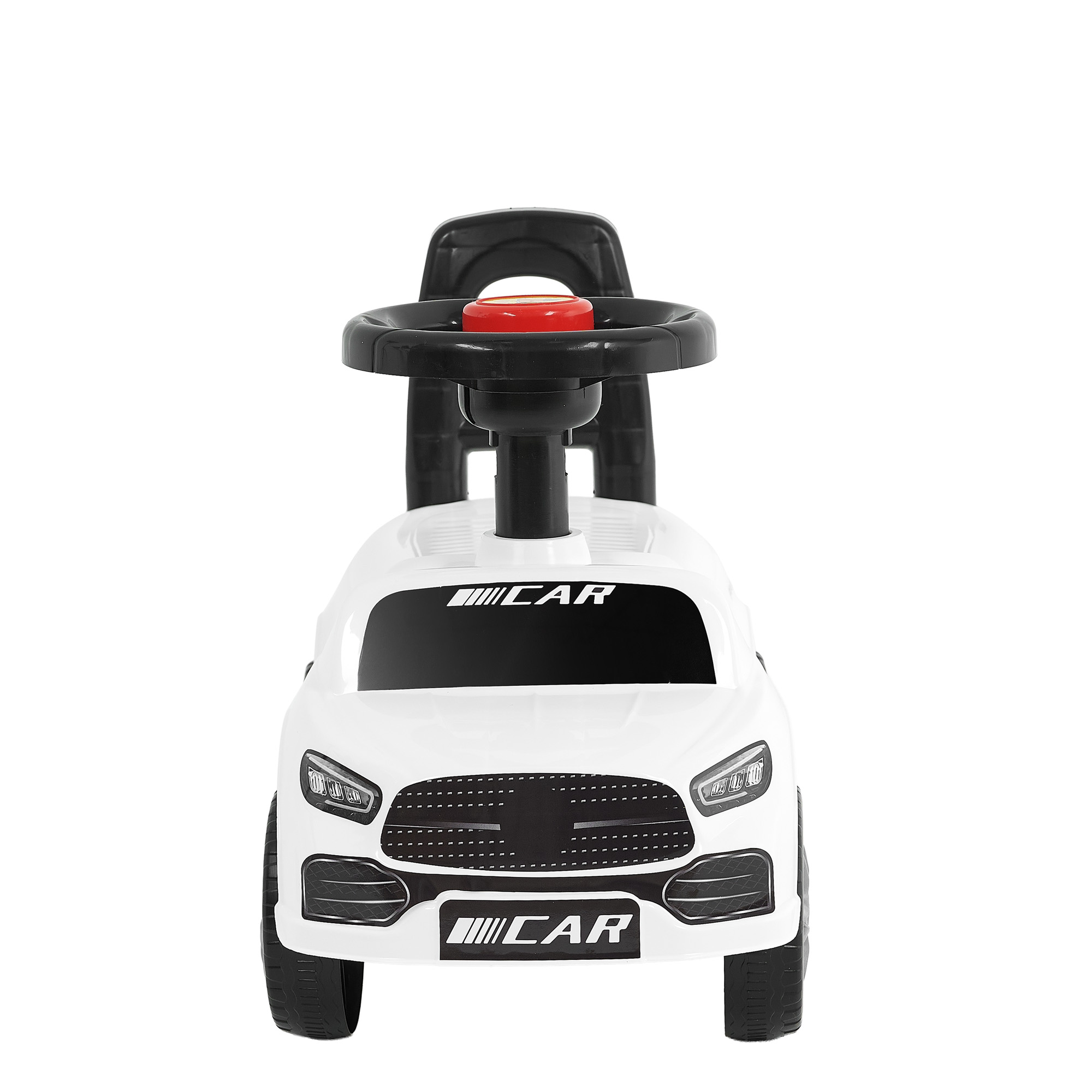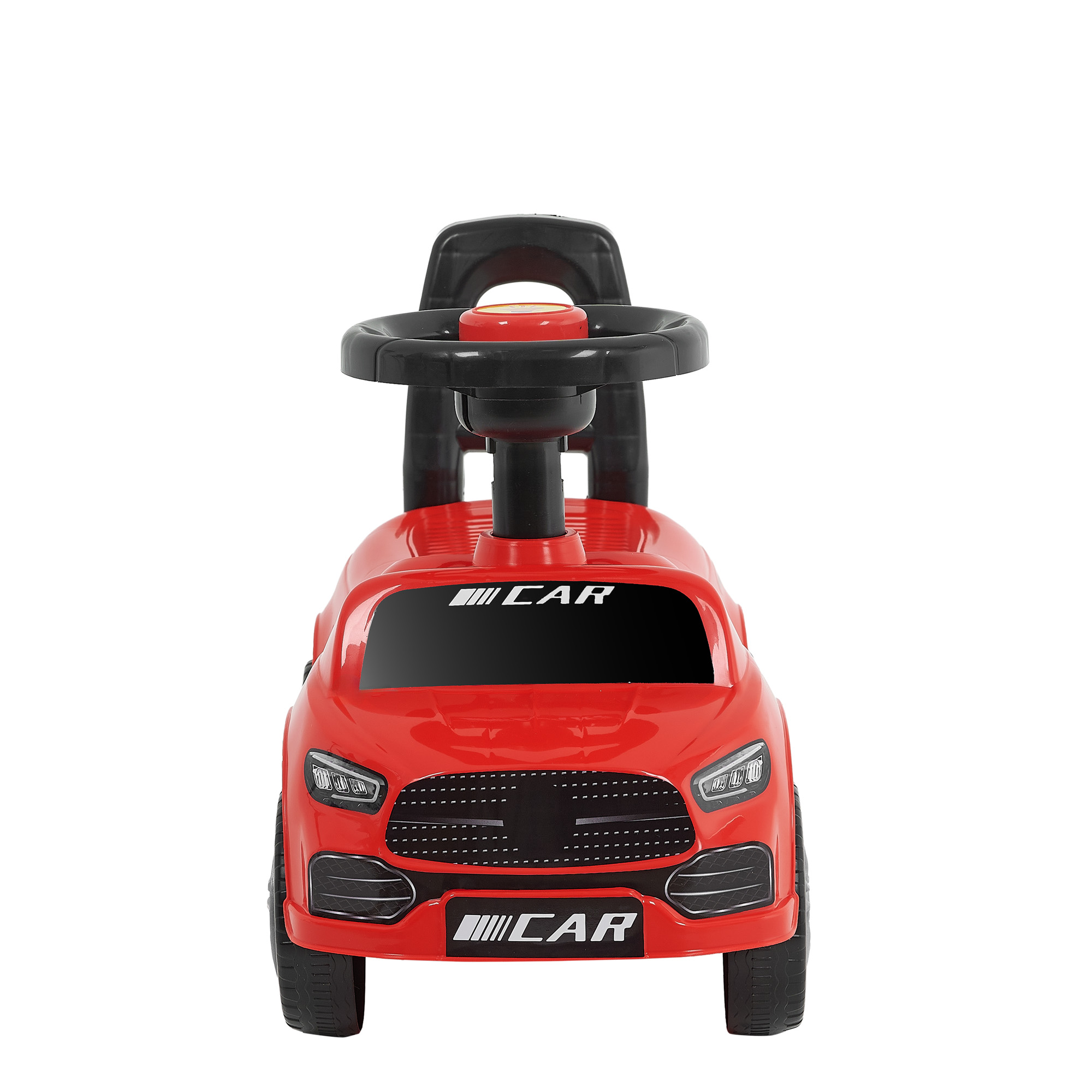 Корпус каталки изготовлен из прочного пластика, который не деформируется при правильной эксплуатации и выдерживает регулярные нагрузки. Гладкие закруглённые контуры без острых кромок делают машинку безопасной для малышей, а устойчивое четырёхколёсное основание способствует уверенной езде. Небольшой собственный вес позволяет легко переносить каталку между комнатами или брать её с собой в поездки.