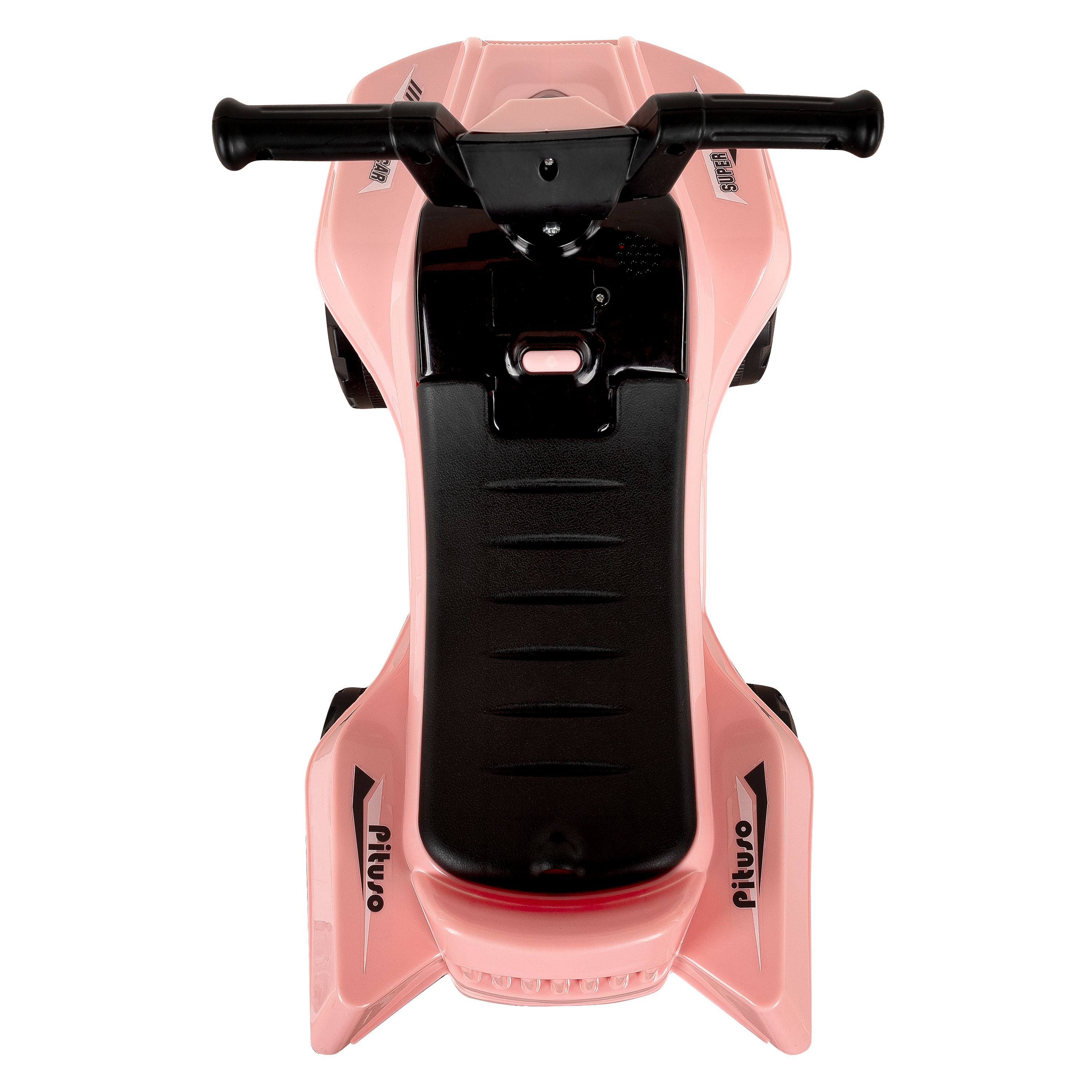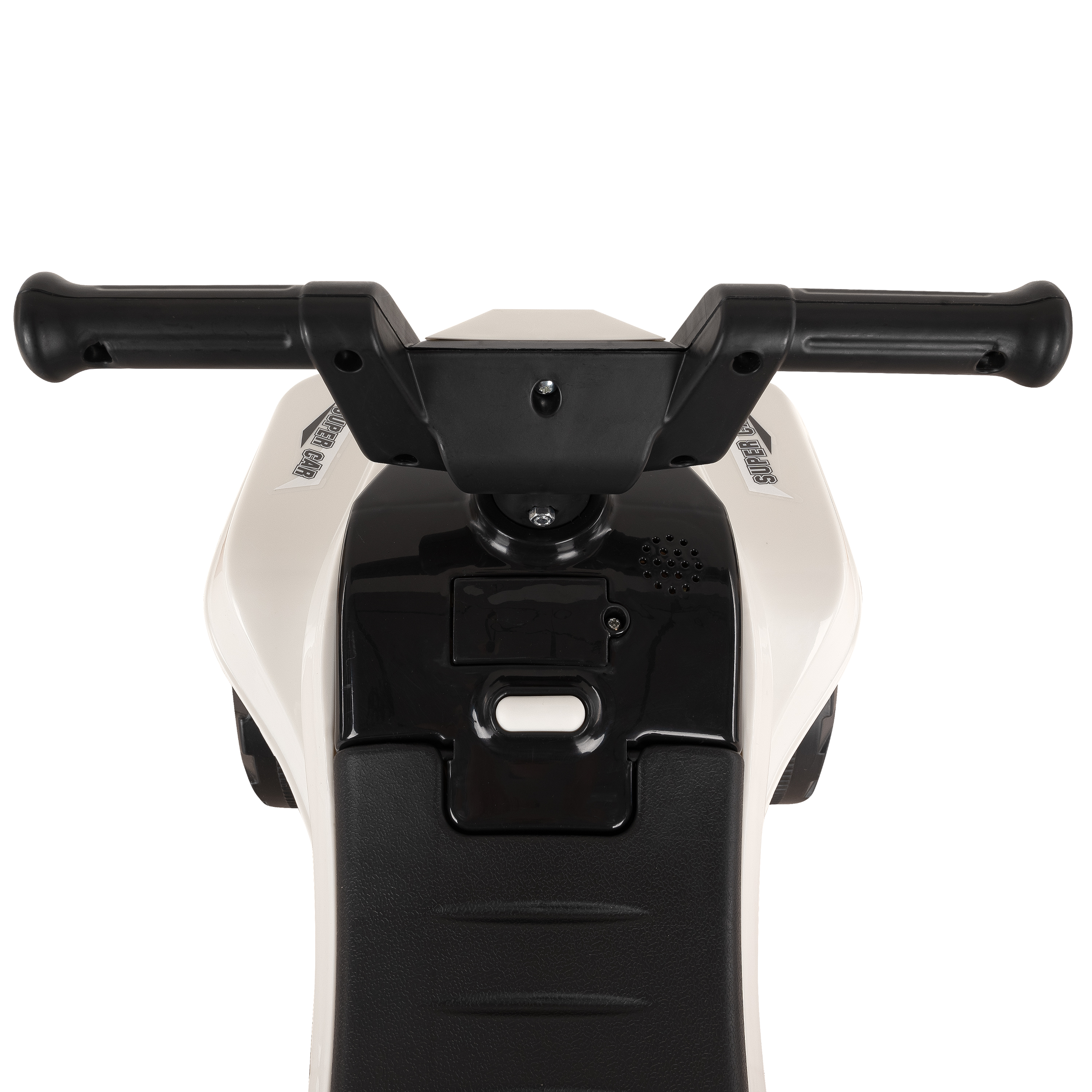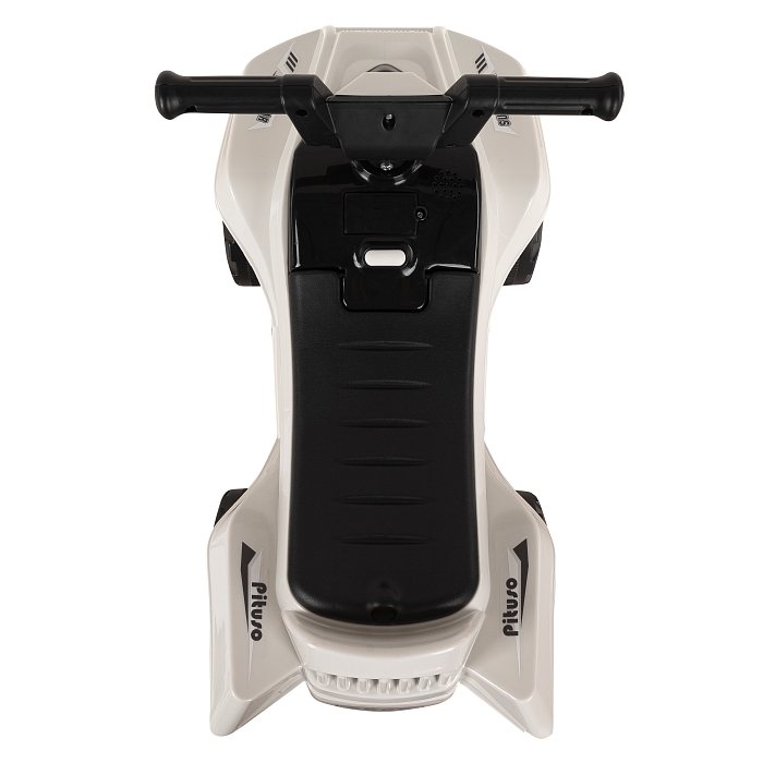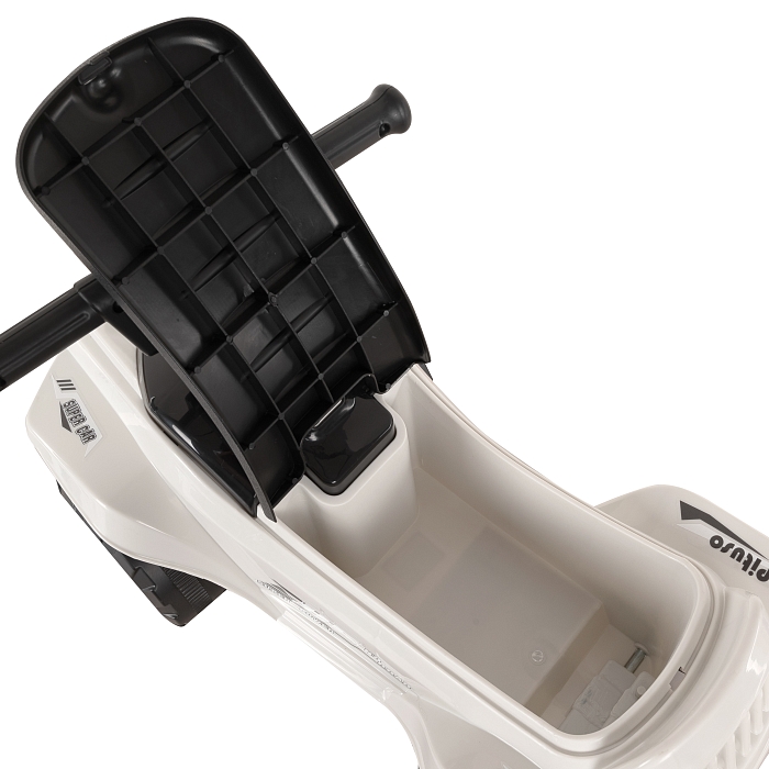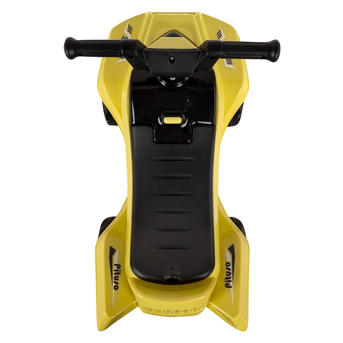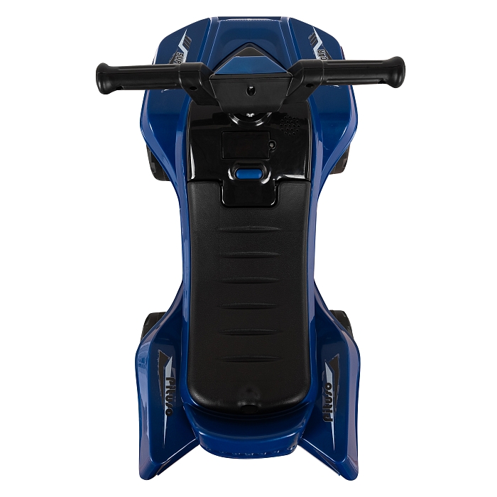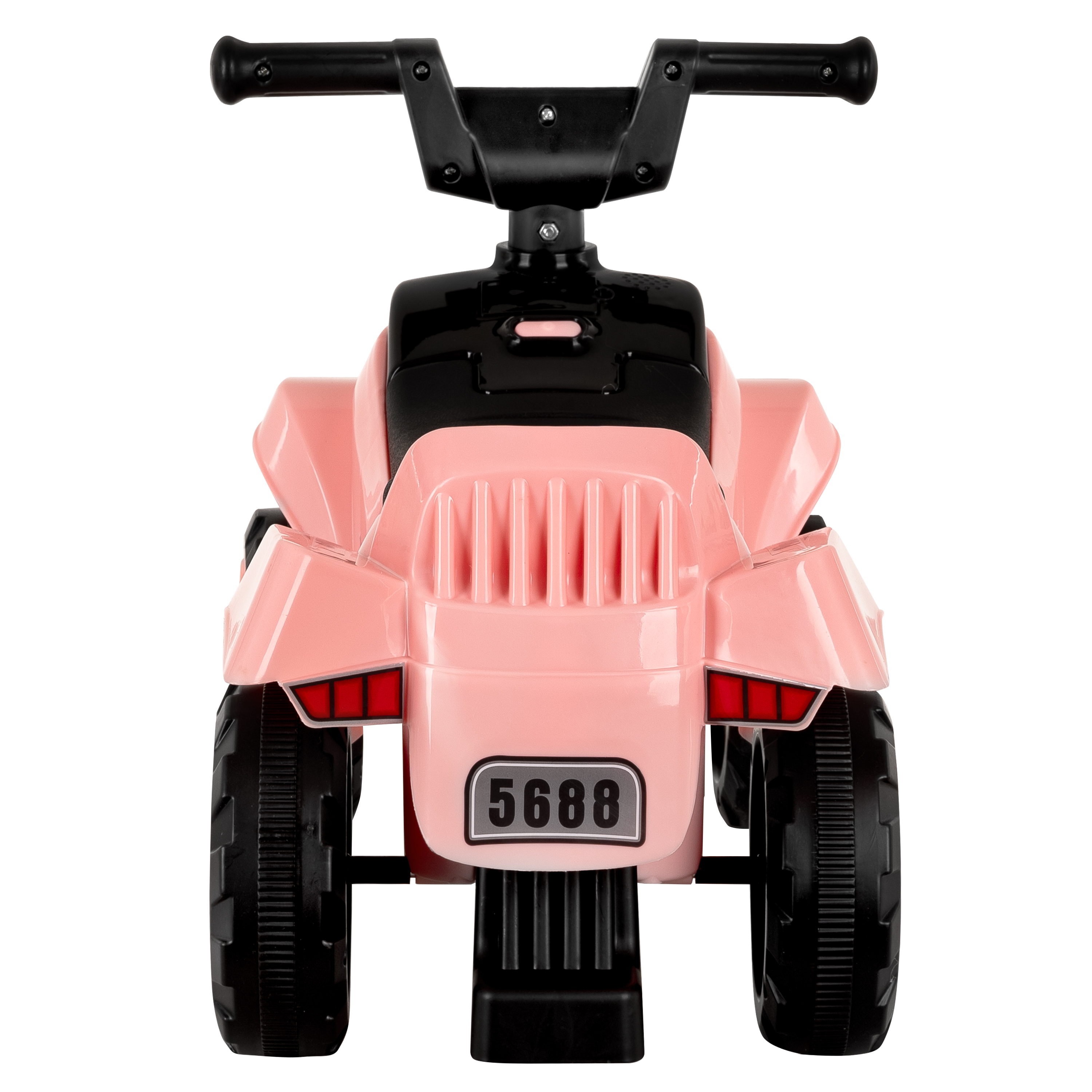Модель выполнена в форме квадроцикла, имеет большие колеса с рисунком на шинах и просторное сиденье для комфортной посадки.