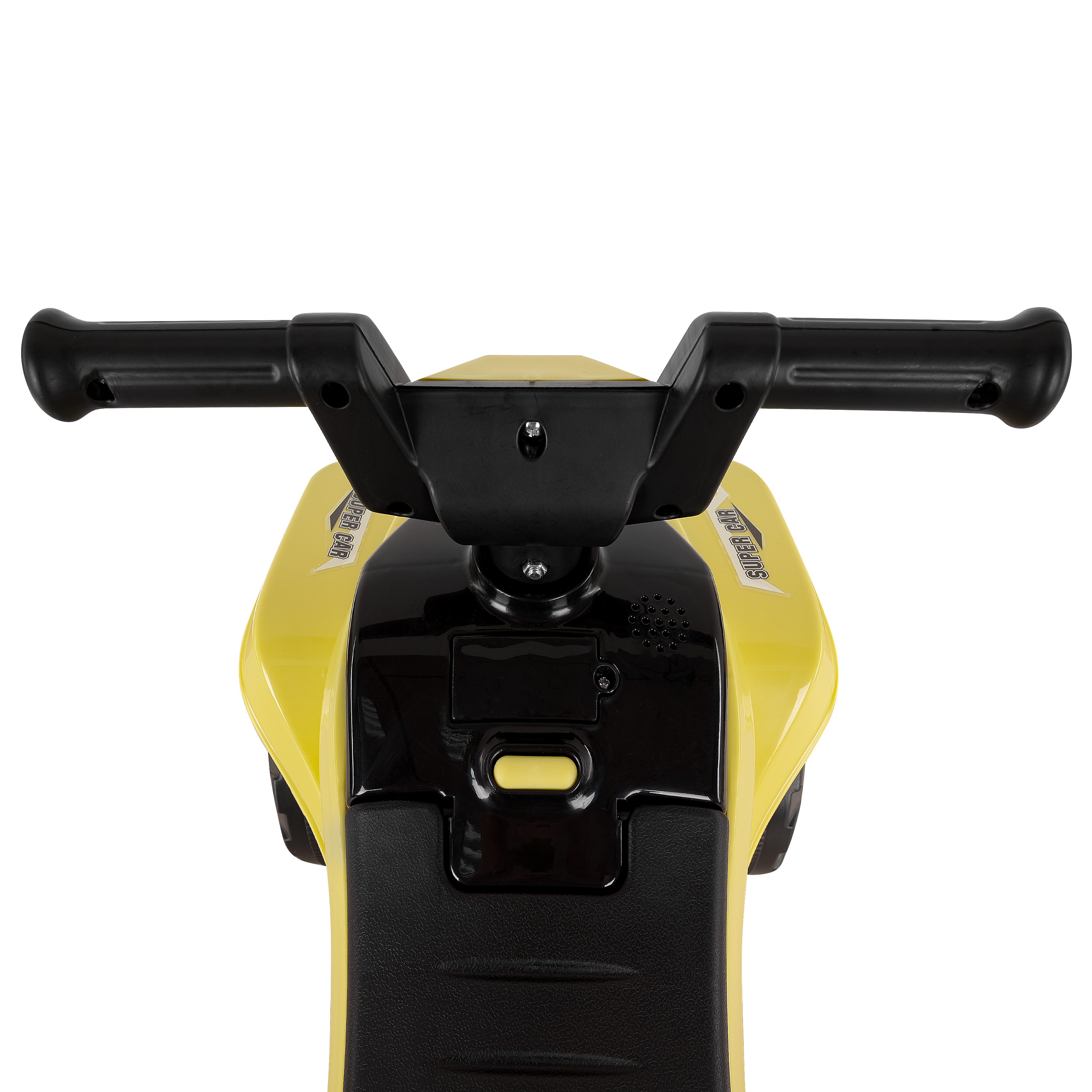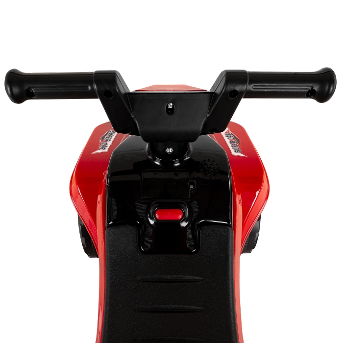 Под рулем расположена кнопка, которая воспроизводят веселые песенки на русском языке - 7 мелодий. (батарейки в комплект не входят).