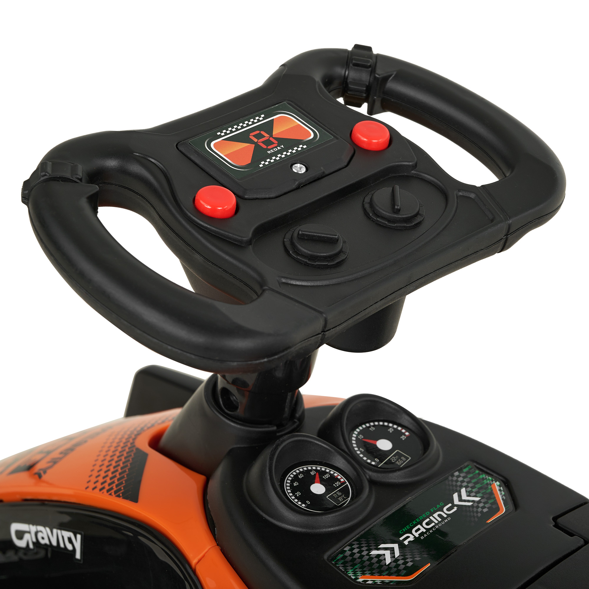 Игрушка имеет музыкальное сопровождение и бесшумные колеса.