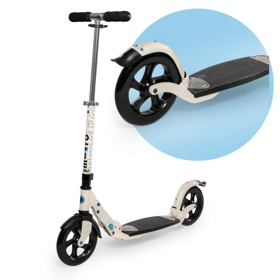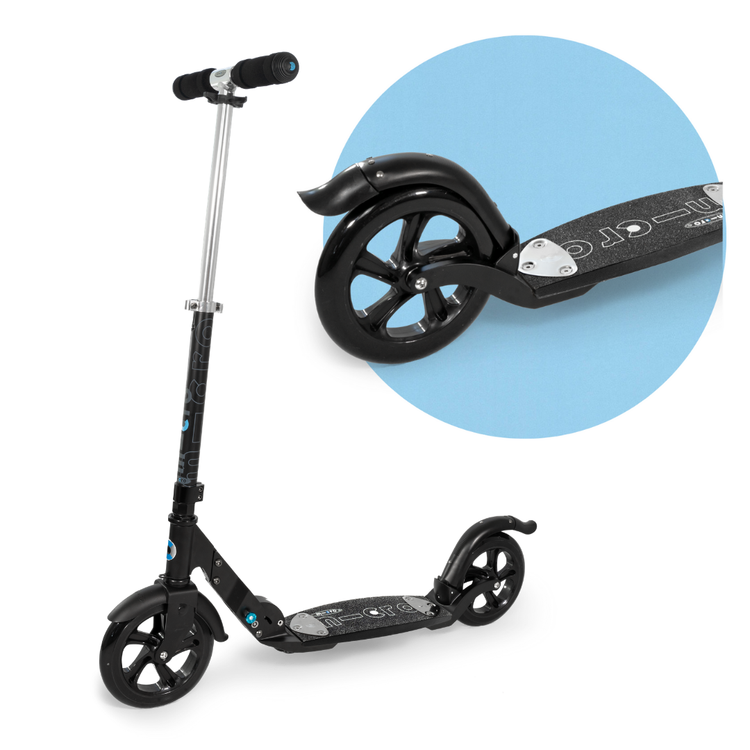 Городской самокат Flex чёрный от известного швейцарского бренда Micro. Популярная модель Flex представляет собой городской самокат весом 5,2 кг. Теперь Flex оснащен платформой из гибкого пластика со стекловолокном, что позволяет выдерживать высокую нагрузку и поглощать удары и вибрации неровных поверхностей.