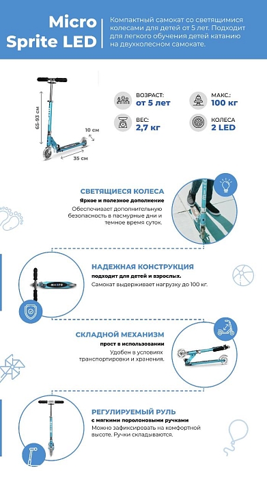 Micro Sprite разработан специально для тех, кто хочет научиться кататься на самокате и получать максимум удовольствия от поездки!