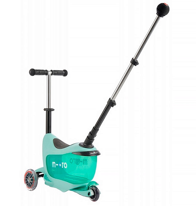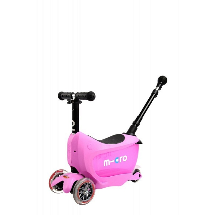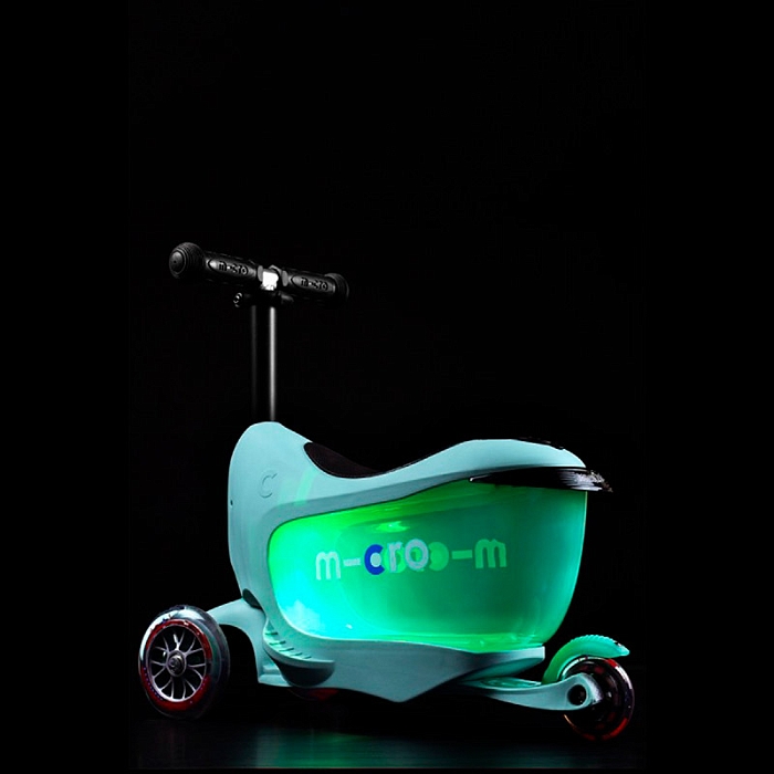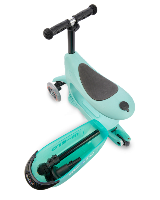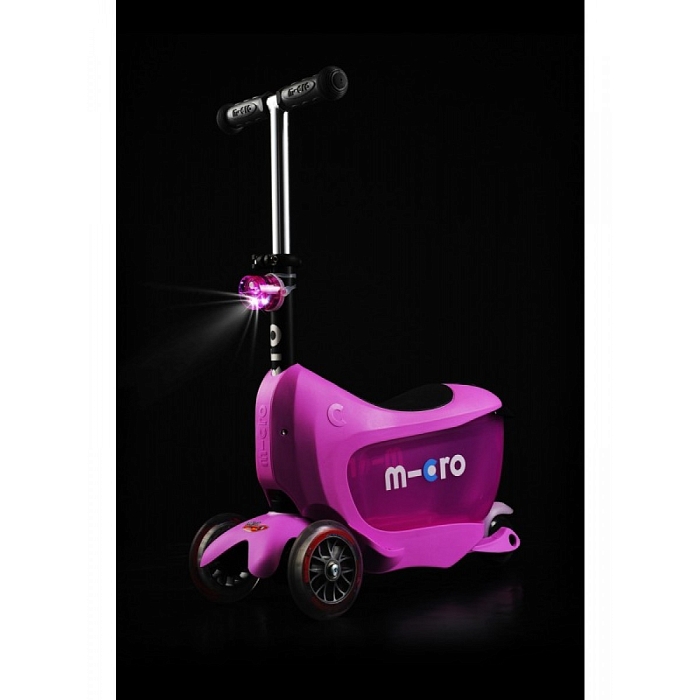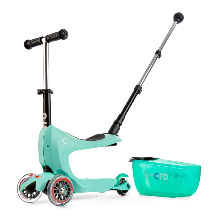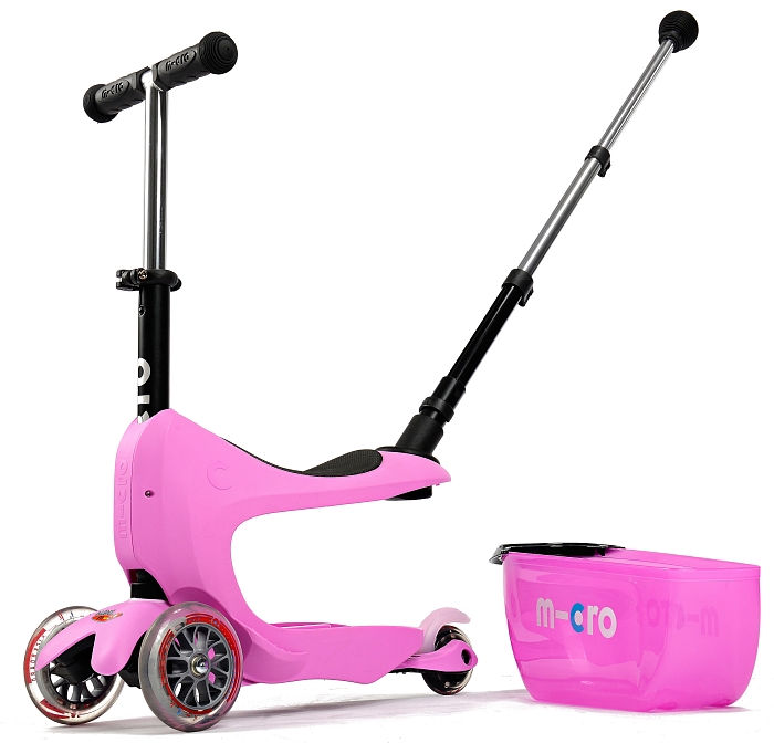 Трехколесный самокат Micro Mini 2GO Deluxe Plus — удобный и практичный детский транспорт с вместительным ящиком, куда можно сложить игрушки.