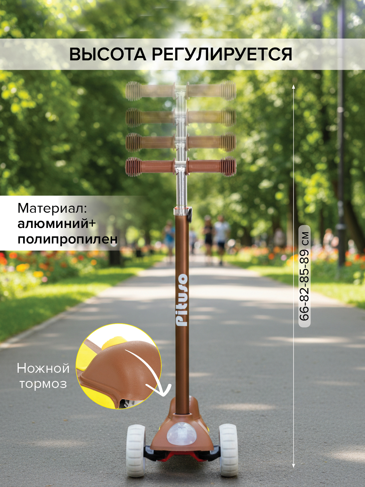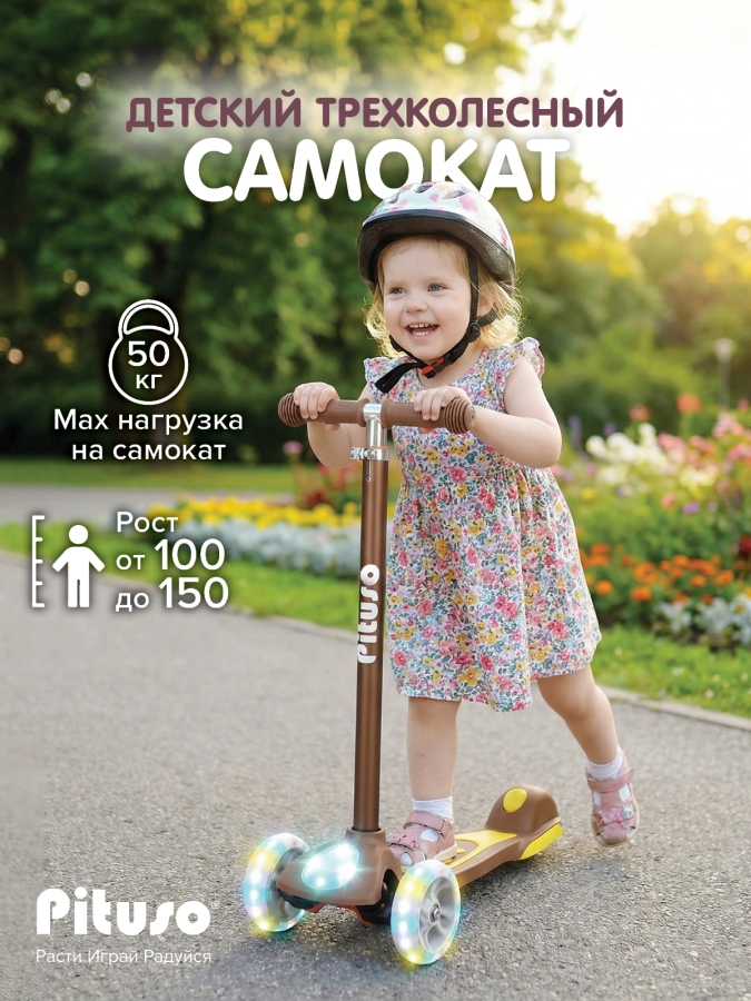 Трехколесный самокат Pituso EC-M08 Brown/Коричневый