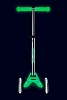 Изначальный цвет самоката при дневном свете более бледный, при сумерках самокат начинает светиться в темноте, а именно светятся ручки, платформа, тормоз и буквы на стойке руля.