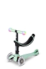 Micro Mini2Grow Deluxe Magic LED - идеальный помощник для первых лет жизни вашего ребенка. Благодаря своей многофункциональности он может использоваться с 12-месячного возраста и будет сопровождать вашего ребенка, как минимум, до достижения им шестилетнего возраста. Инновационный и эргономичный самокат "все в одном" можно использовать в различных вариантах: в самом начале с сиденьем, двумя вариантами подставки для ног и родительской ручкой, позже без ручки, как гибрид беговела и самоката и, наконец, как классический Mini Micro Deluxe с волшебной светодиодной подсветкой фонариков на руле и светящимися колесами. Родительскую ручку можно использовать вертикально в дополнение к стандартному горизонтальному положению. Это означает, что для толчка требуется только одна рука, защищая таким образом запястье и мышцы.