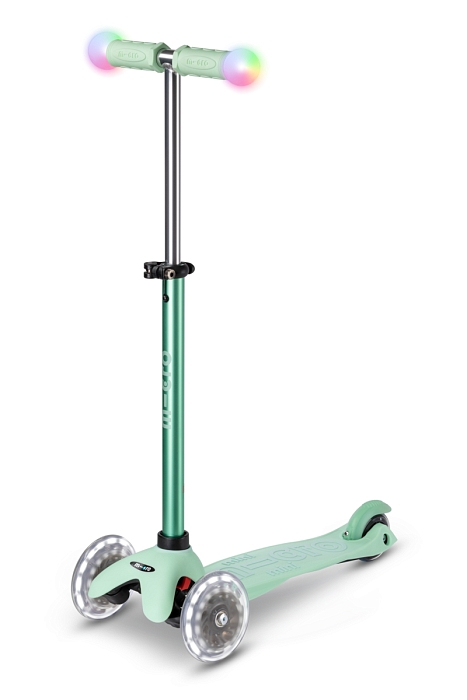 Кроме того, Micro Mini2Grow Deluxe Magic LED отличается регулируемым по высоте рулем, запатентованным механизмом наклона к рулю и дополнительной прочной подножкой.
