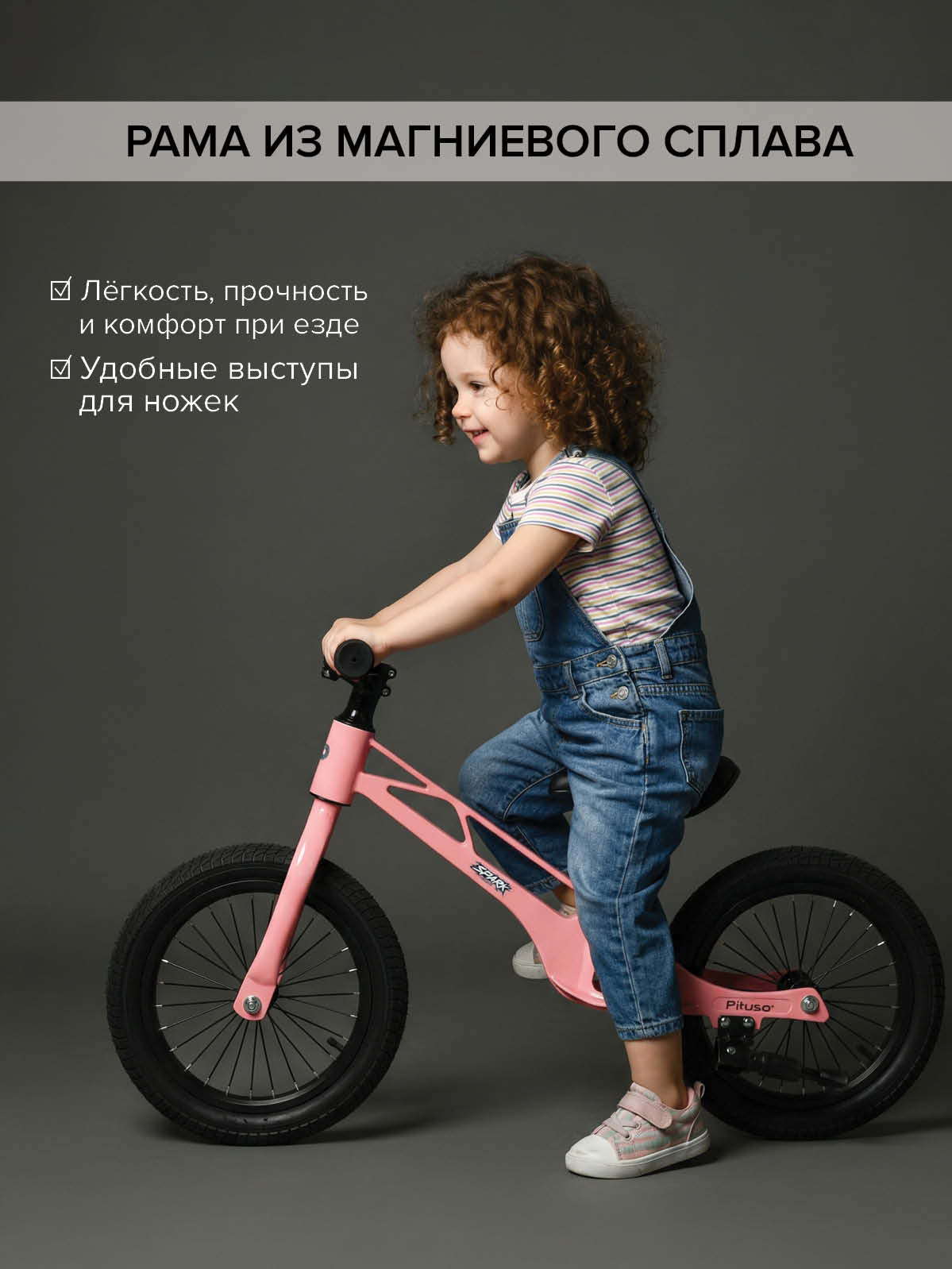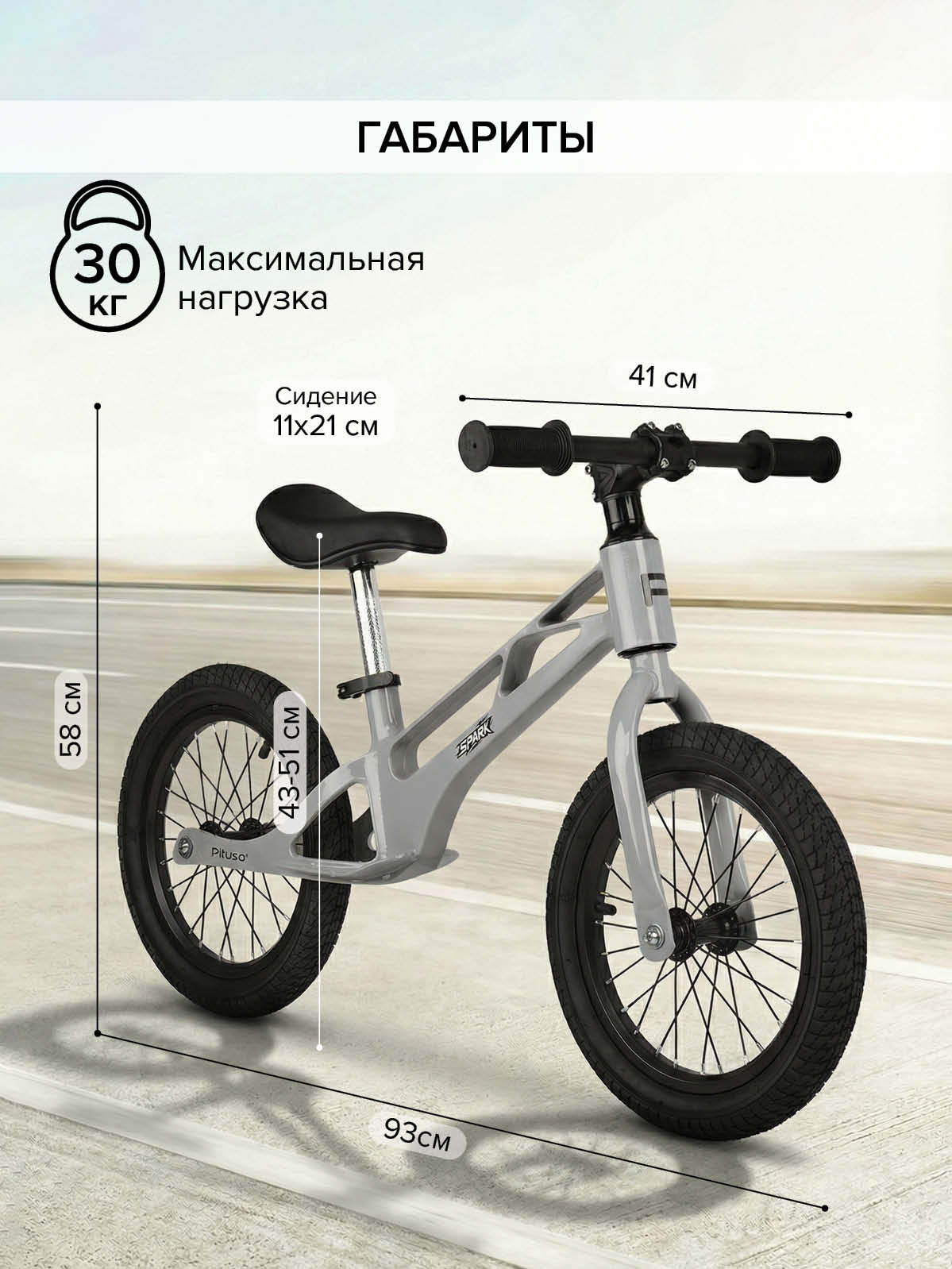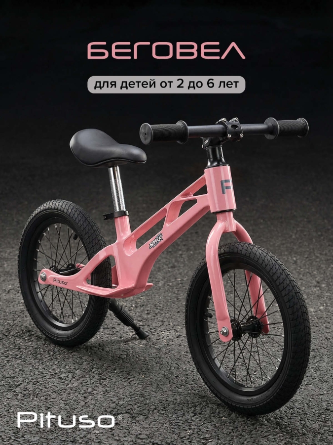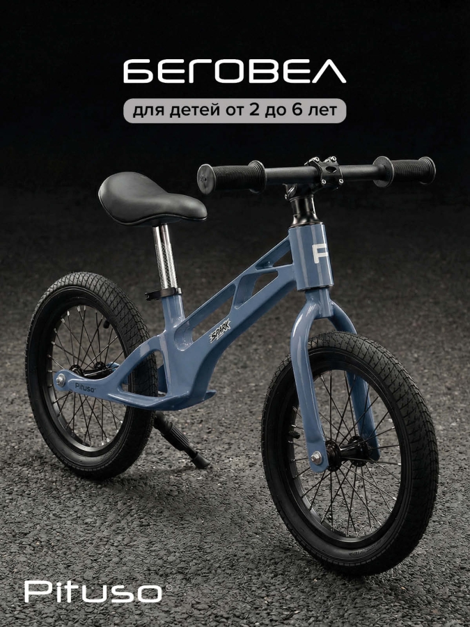 Беговел Pituso Spark с магниевой рамой рассчитан на детей примерно от 2 до 6 лет при максимальной нагрузке до 30 кг. Главное, чтобы ребёнок уверенно ходил, мог самостоятельно держать равновесие и доставал ногами до пола при посадке на велобег.