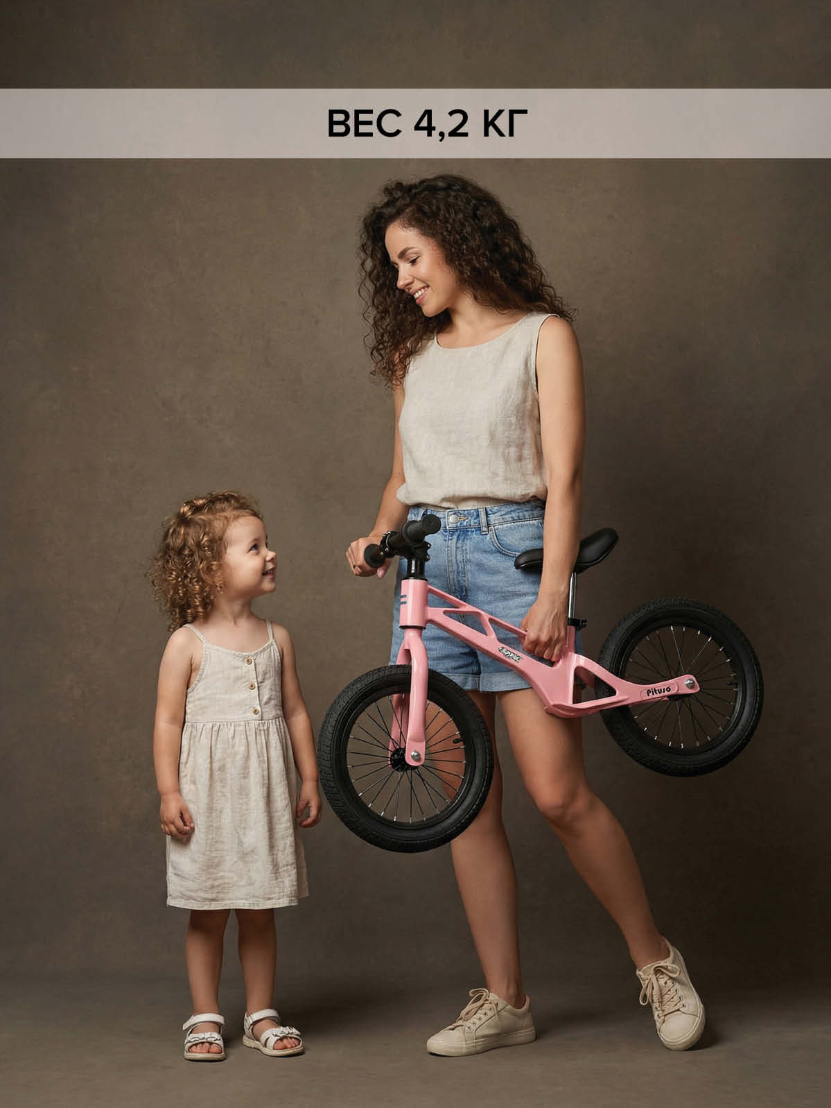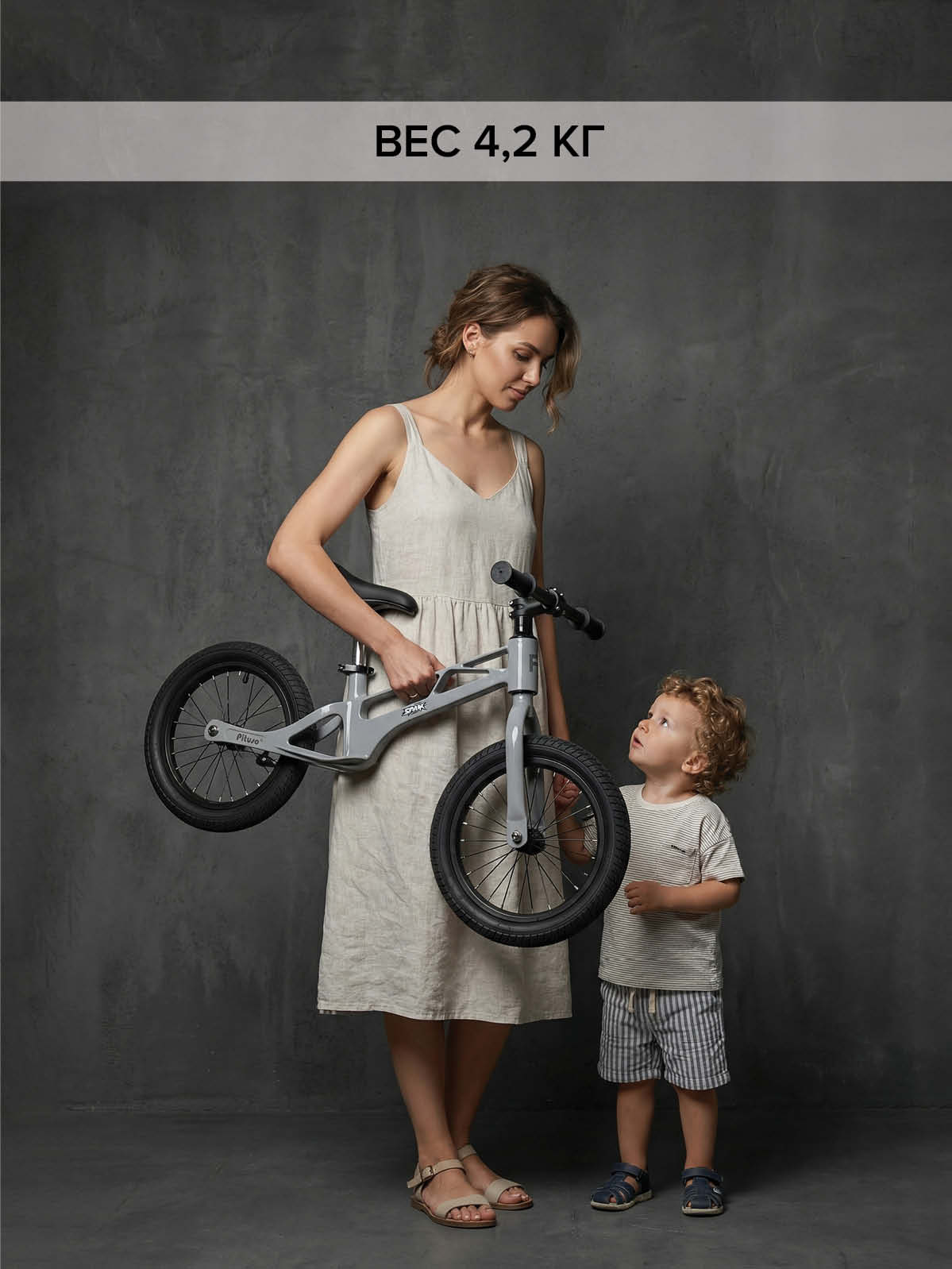 Магниевая рама легче традиционной стальной, при этом сохраняет высокую прочность и жёсткость конструкции. Благодаря меньшему весу ребёнку проще управлять беговелом, а взрослым удобнее переносить его по лестнице или загружать в багажник автомобиля.