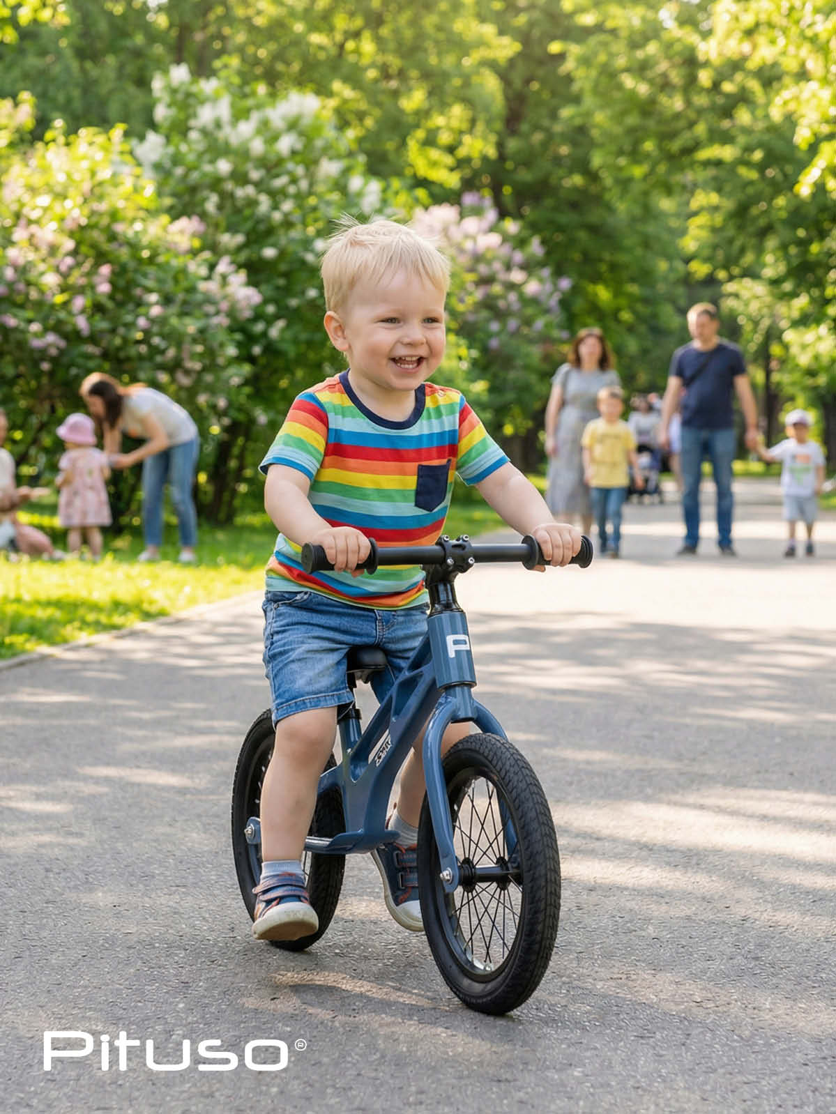 Беговел Pituso Spark с магниевой рамой — это лёгкий и прочный велосипед без педалей, который помогает ребёнку почувствовать свободу движения с первых самостоятельных поездок. В возрасте от 2 до 6 лет дети особенно быстро осваивают координацию, и велобег даёт возможность тренировать равновесие в игровой форме, без страха и жёстких падений, которые часто возникают при попытке сразу пересесть на обычный велосипед. Такой транспорт становится не просто игрушкой, а первым шагом к уверенной езде на двух колёсах.