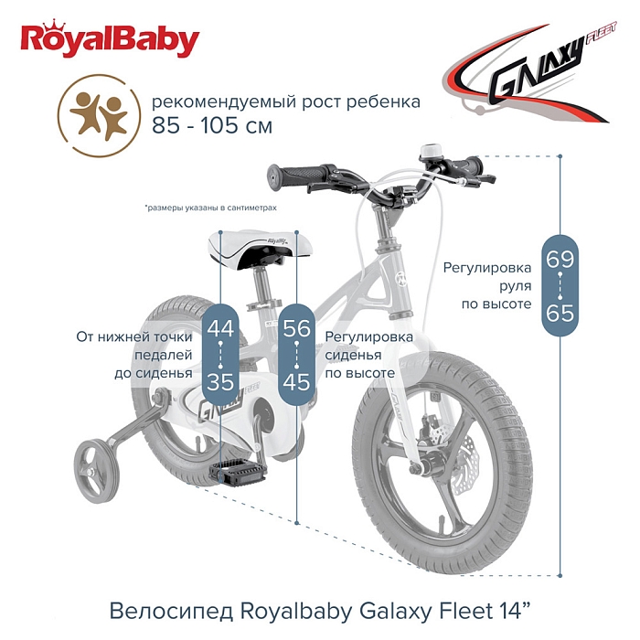 Детский велосипед Royal Baby Galaxy Fleet 14" порадует Вас своими функциональными особенностями, качественной сборкой, стильным дизайном и отличной ценой.