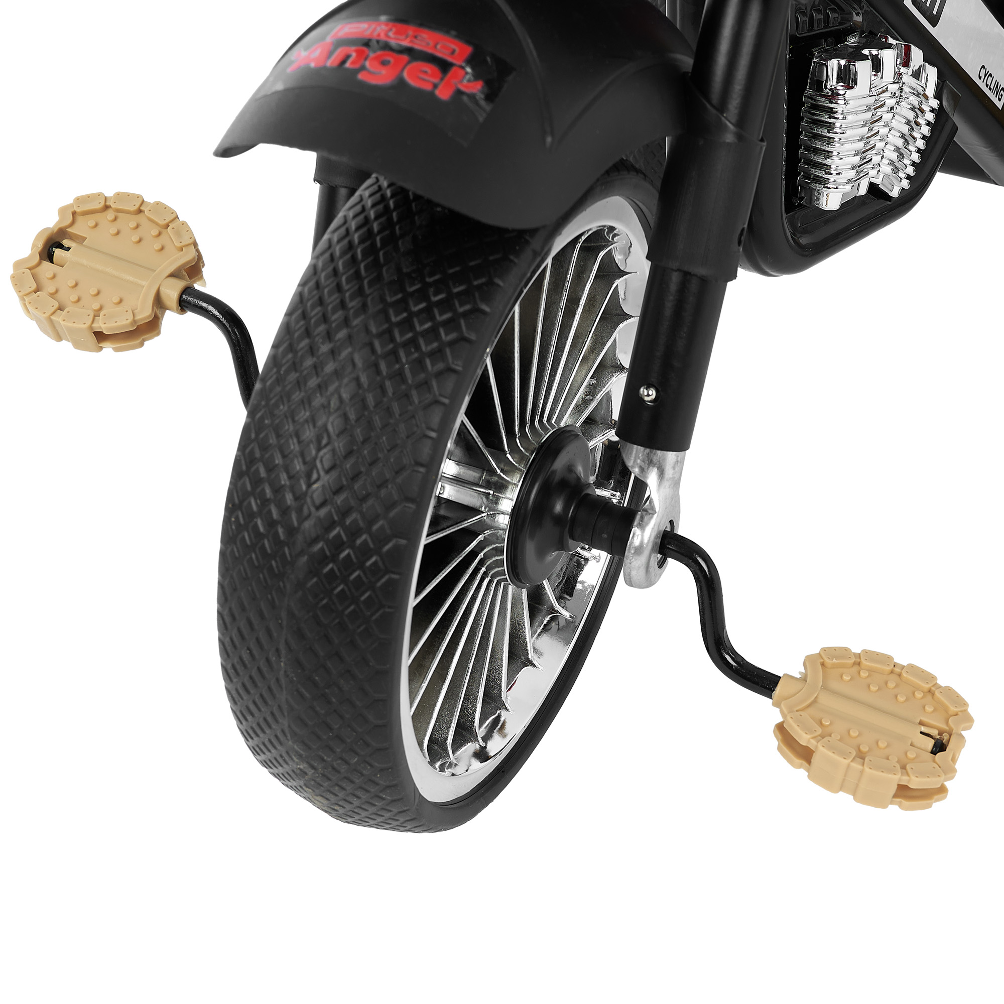 - Педали на переднем колесе для развития мышц ног и координации;