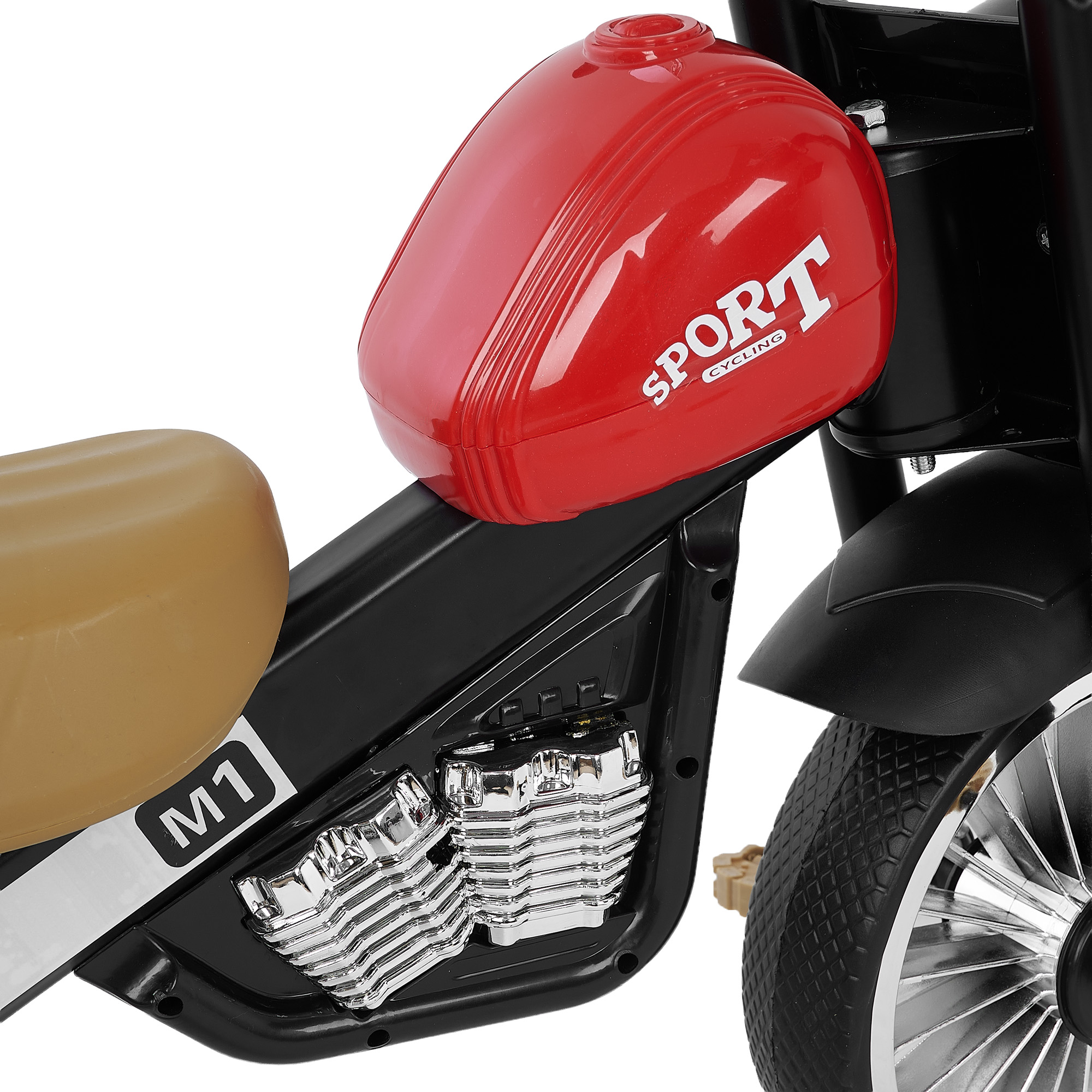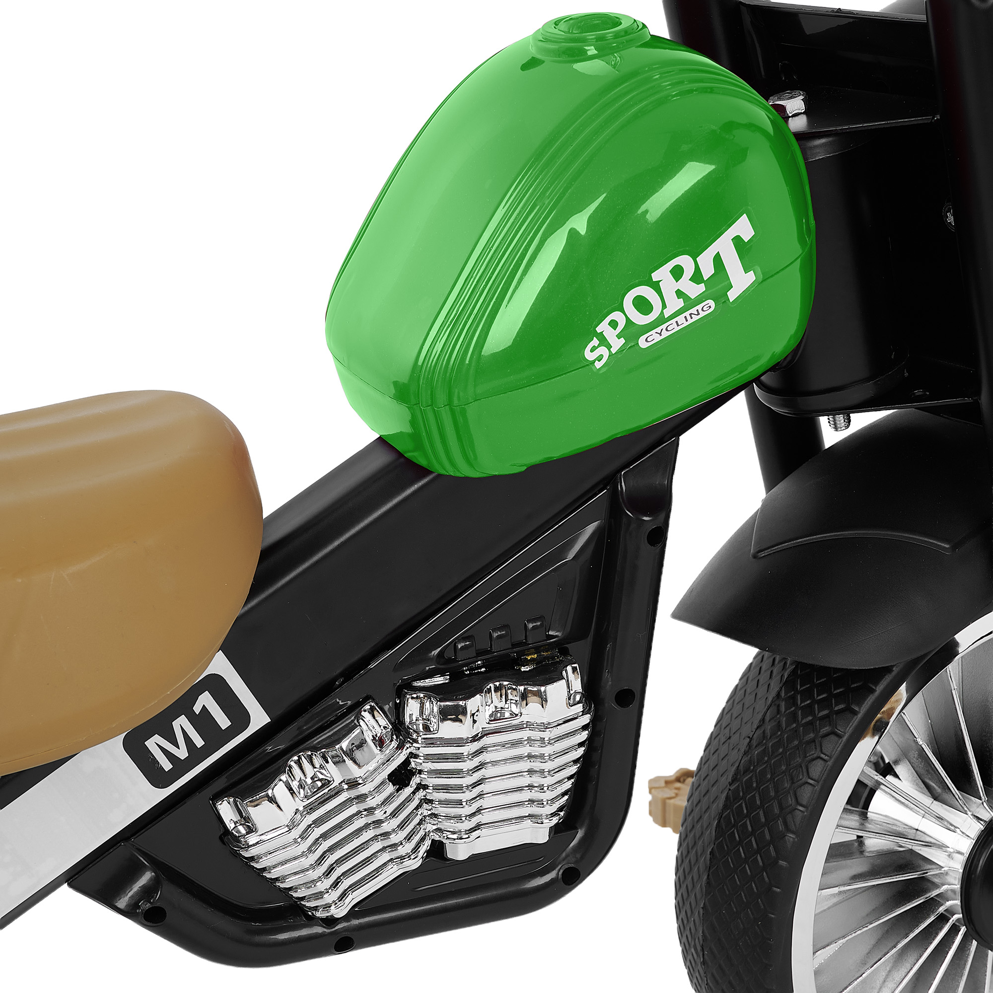 Модель оснащена надёжным механизмом привода на переднее колесо, что обеспечивает предсказуемое движение и комфортный накат. Подсветка передней фары с разноцветным миганием и музыкальное сопровождение добавляют эффект «настоящего транспорта» — малышу гораздо интереснее кататься, когда велосипед светится и играет. Такие детали мотивируют ребёнка чаще выходить на прогулку и проводить больше времени на свежем воздухе.