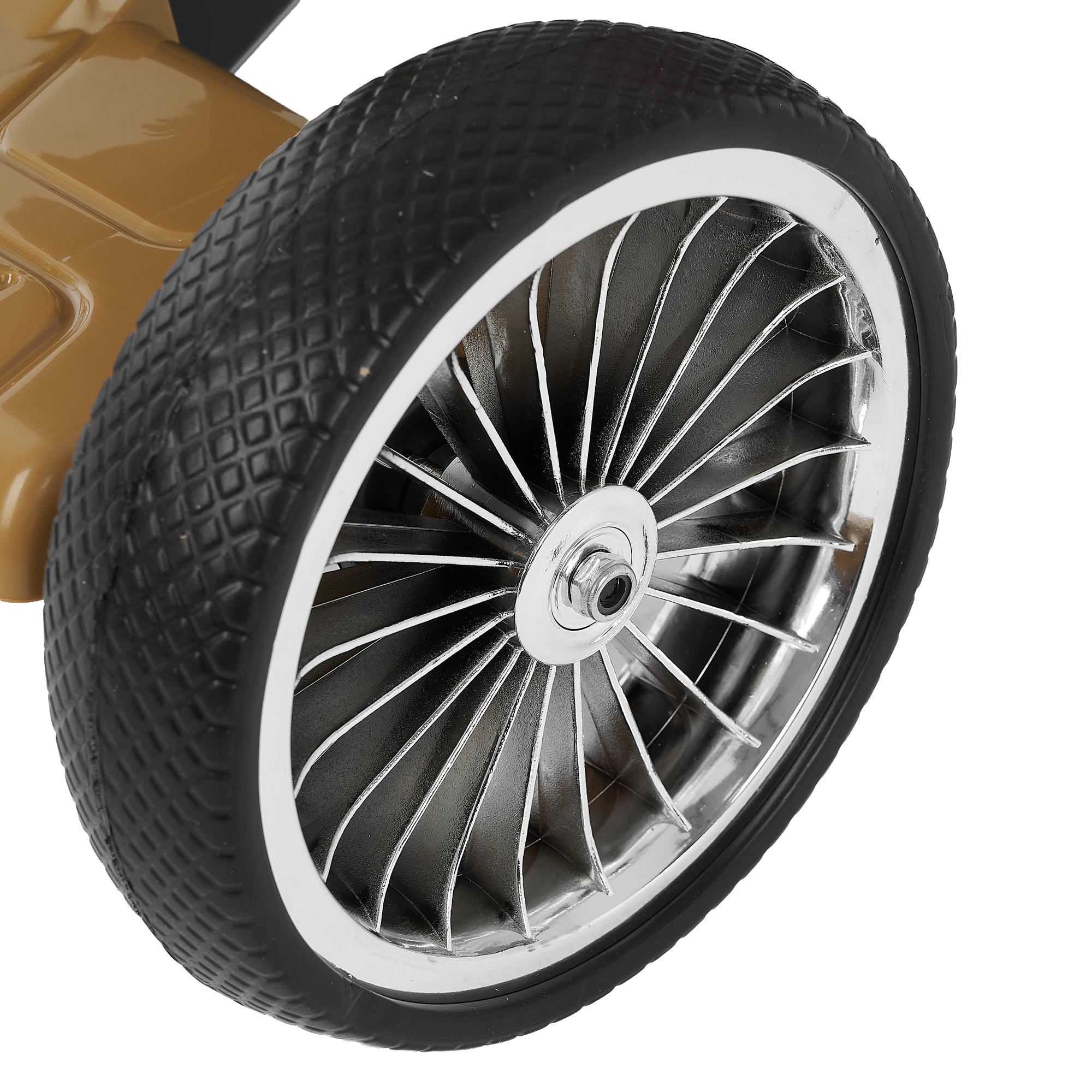 - Колёса: материал ЭВА; диаметр переднего колеса 24 см, задних — 19 см.