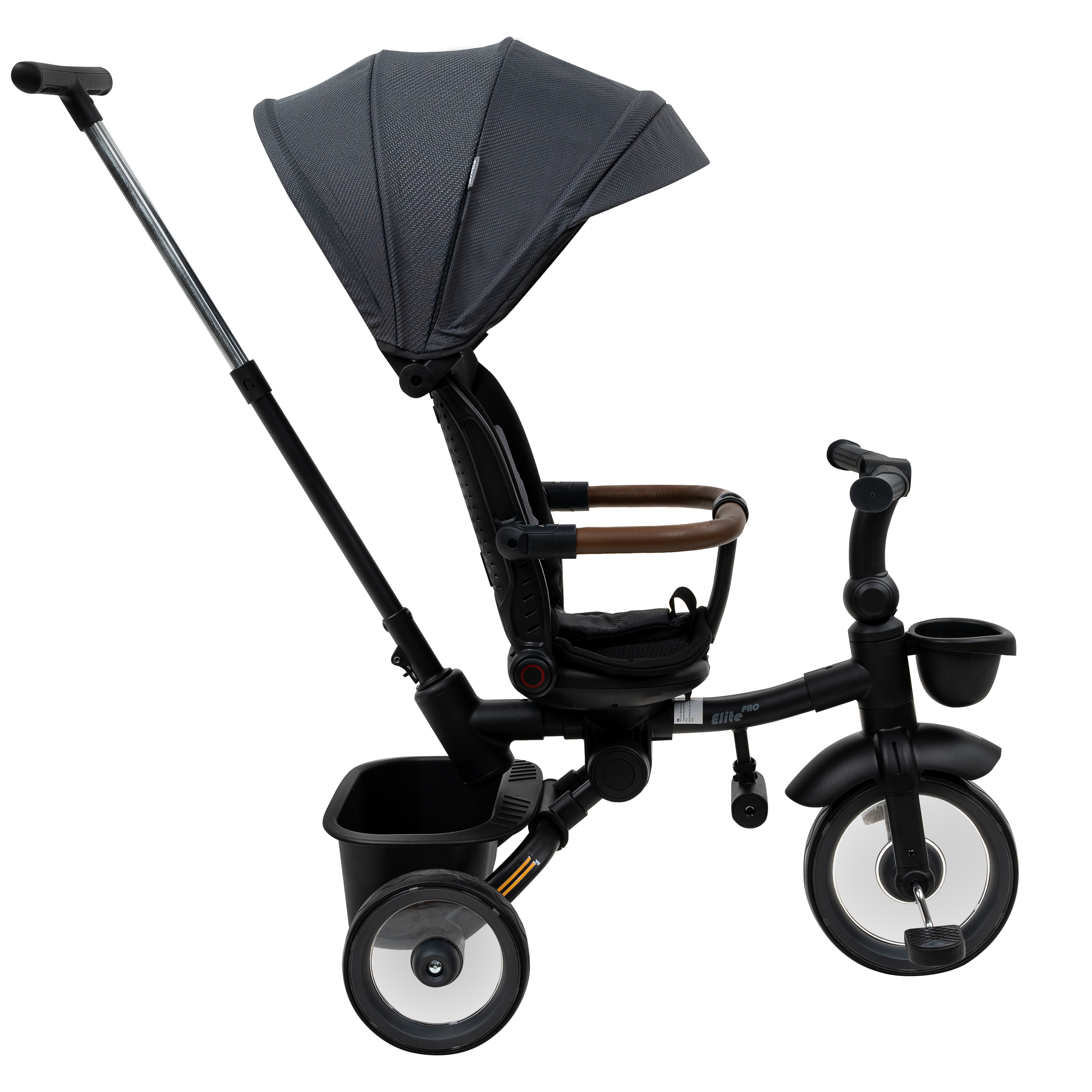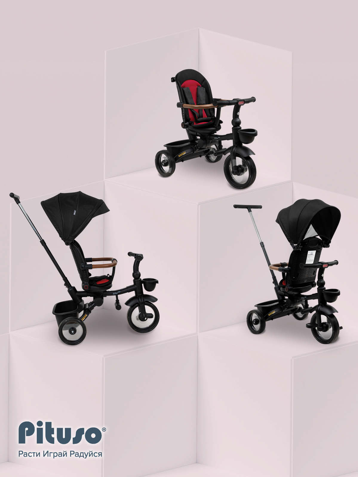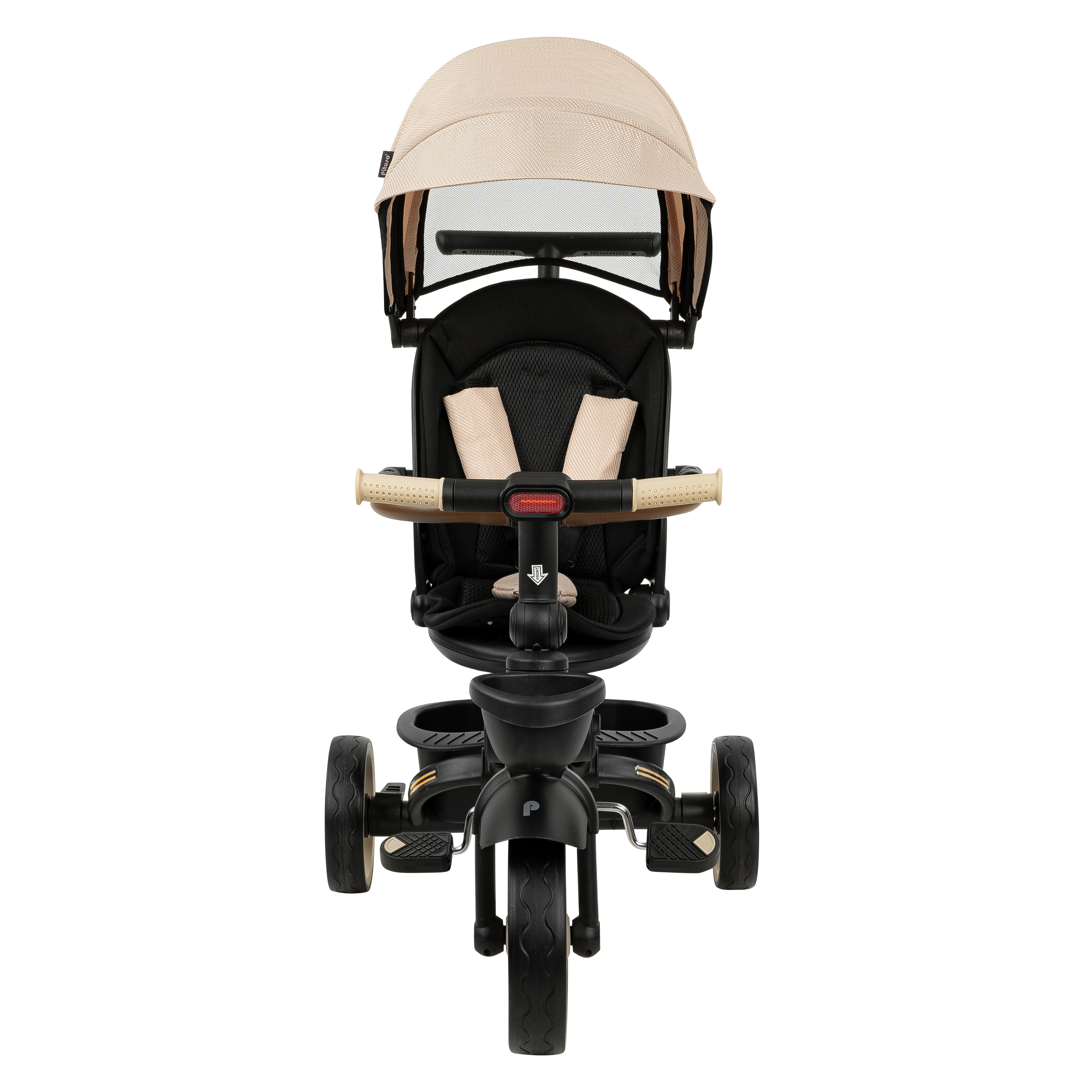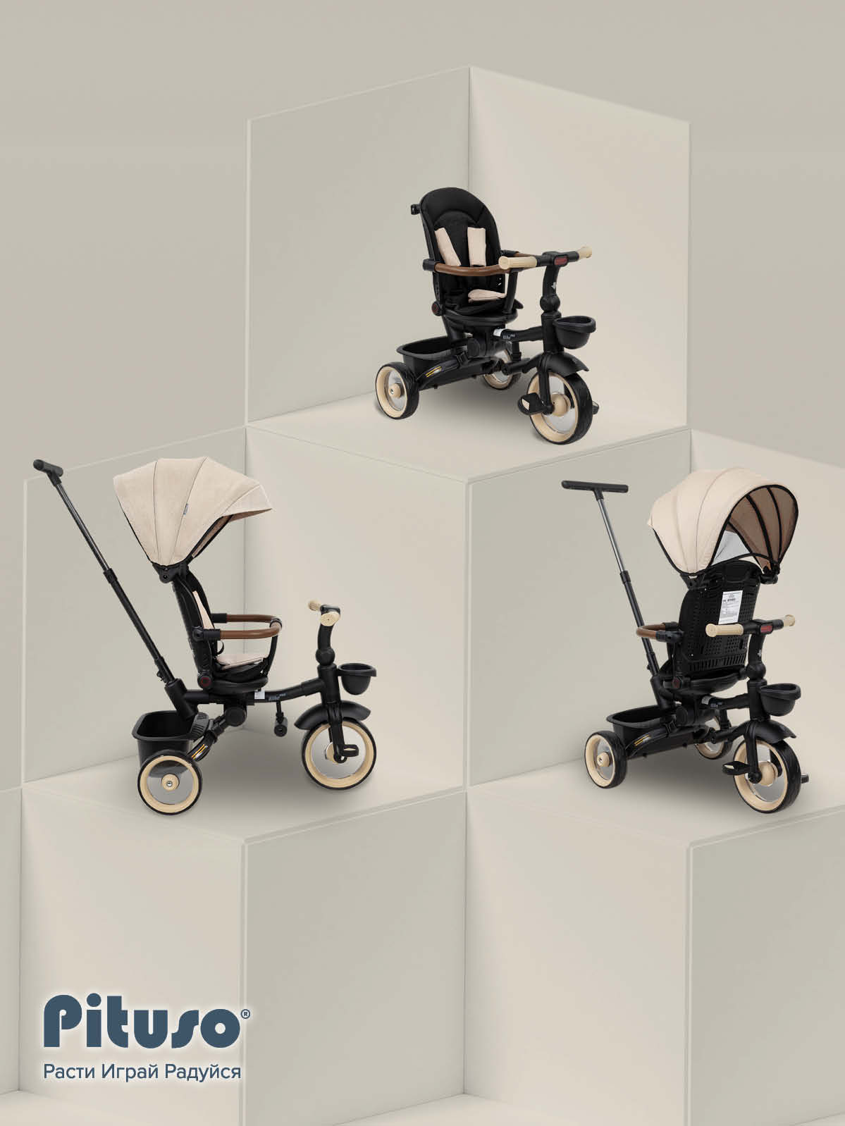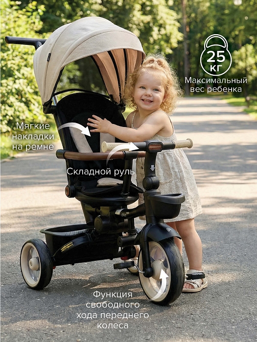 Трехколесный велосипед Pituso Elite Pro – практичная модель для детей от 18 месяцев, рассчитанная на ежедневные прогулки по городу и во дворе. Телескопическая родительская ручка высотой 89–97 см помогает полностью контролировать движение, пока ребенок только осваивает первый велосипед. Прочная стальная рама выдерживает нагрузку до 25 кг, а полиуретановые колеса обеспечивают мягкий и тихий ход по асфальту и тротуарной плитке. Доступны популярные цвета: черный, серый, бежевый – легко подобрать вариант под коляску и гардероб малыша.