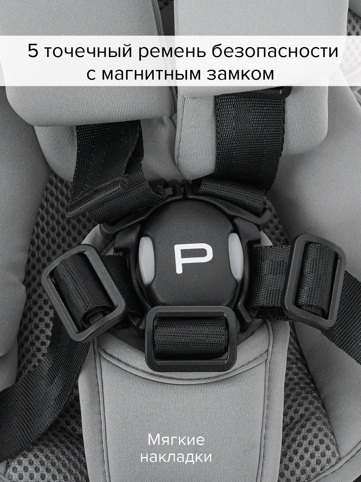 - 5‑точечный ремень безопасности с мягкими накладками;