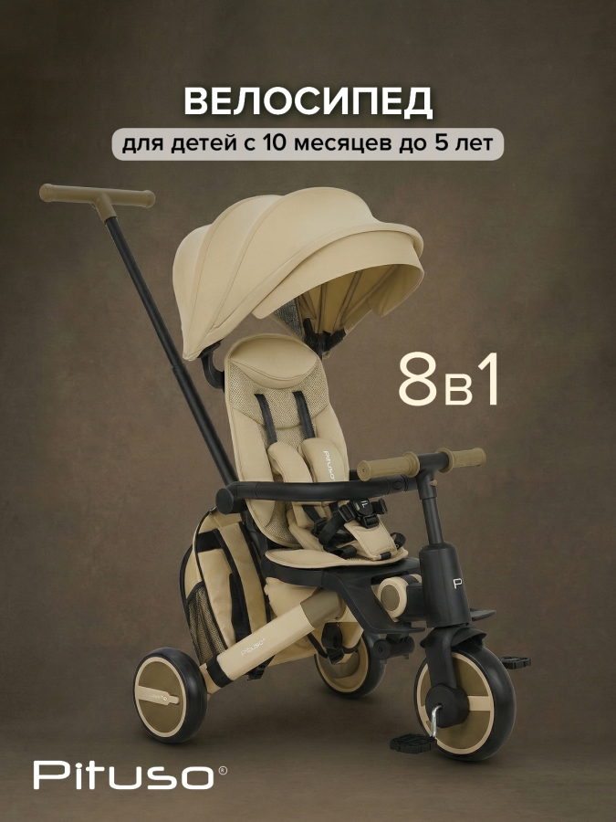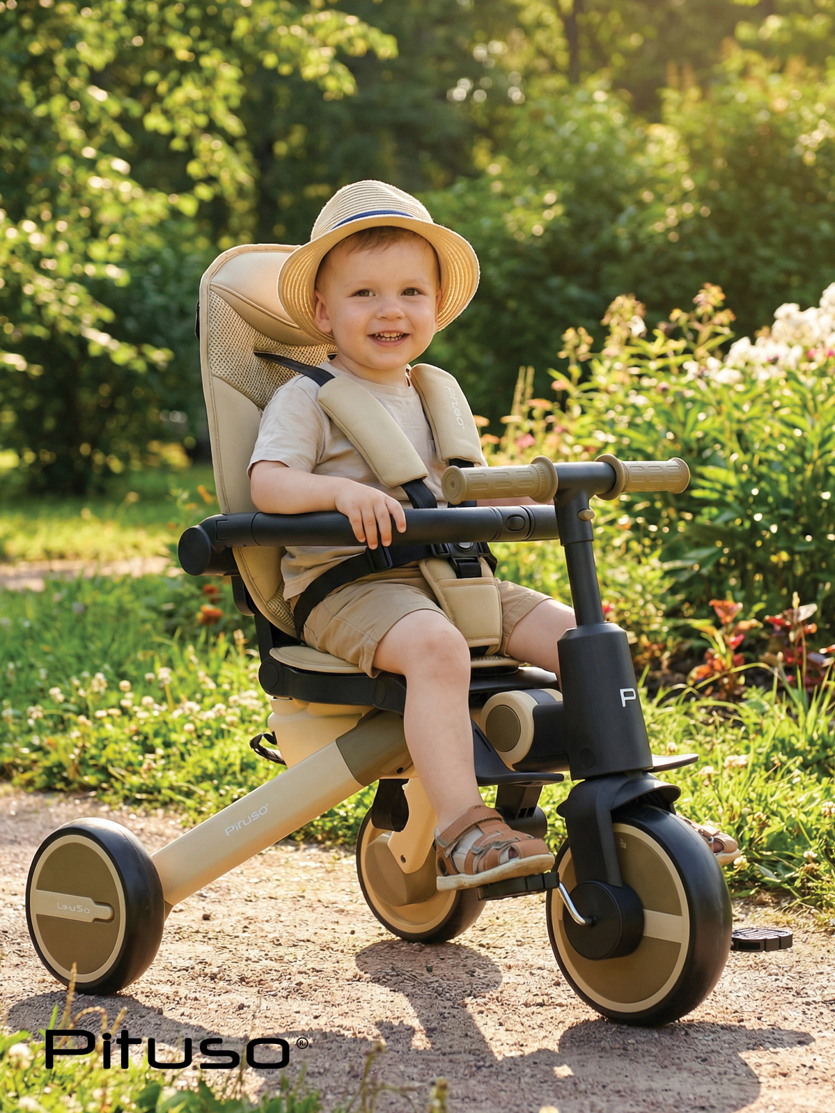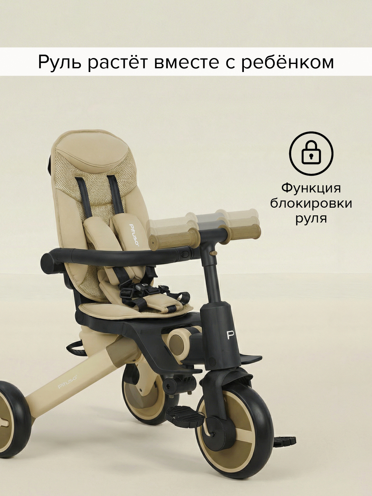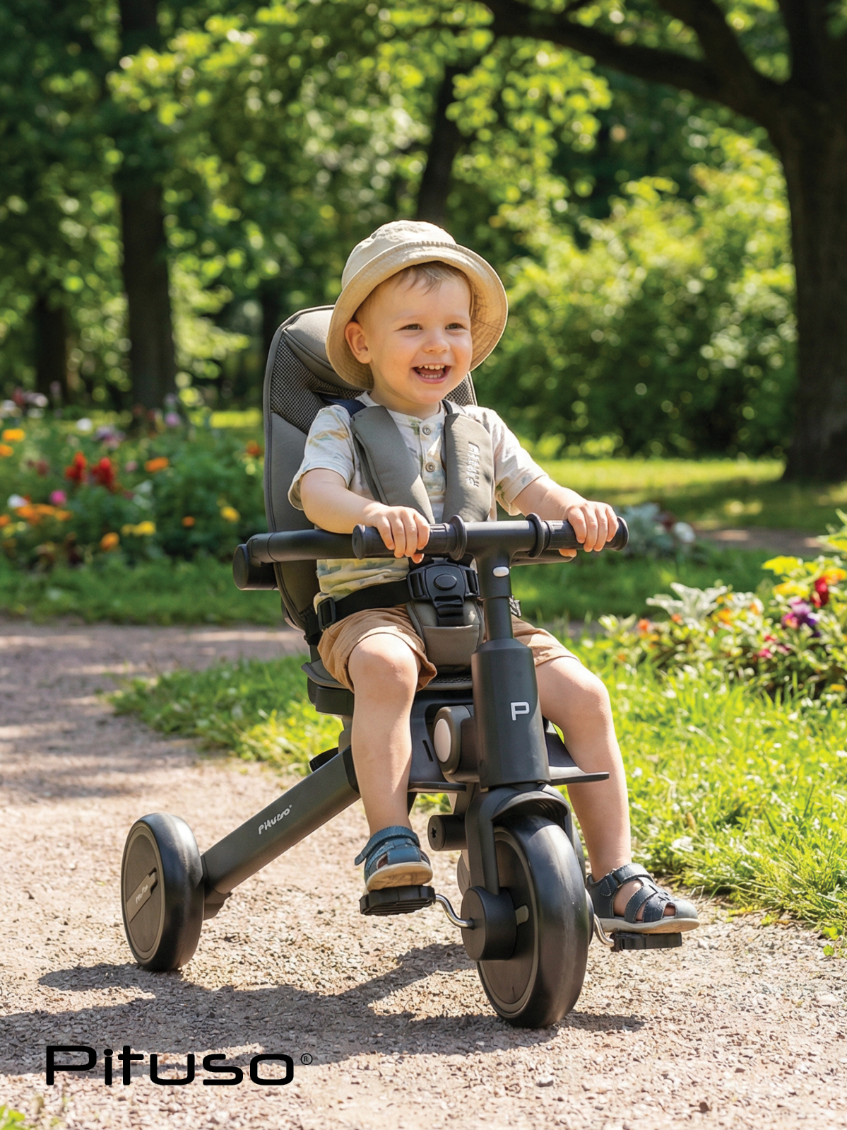 Новинка 2026 года сохраняет концепцию компактного складного 3х колесного велосипеда, но получила расширенный функционал и доработанный дизайн. Велосипед по-прежнему складывается до компактного размера, остается легким в переноске и транспортировке, но стал удобнее для малыша и практичнее для родителей. Обновленные материалы и внешний вид подчеркивают премиальное позиционирование модели в линейке Pituso.