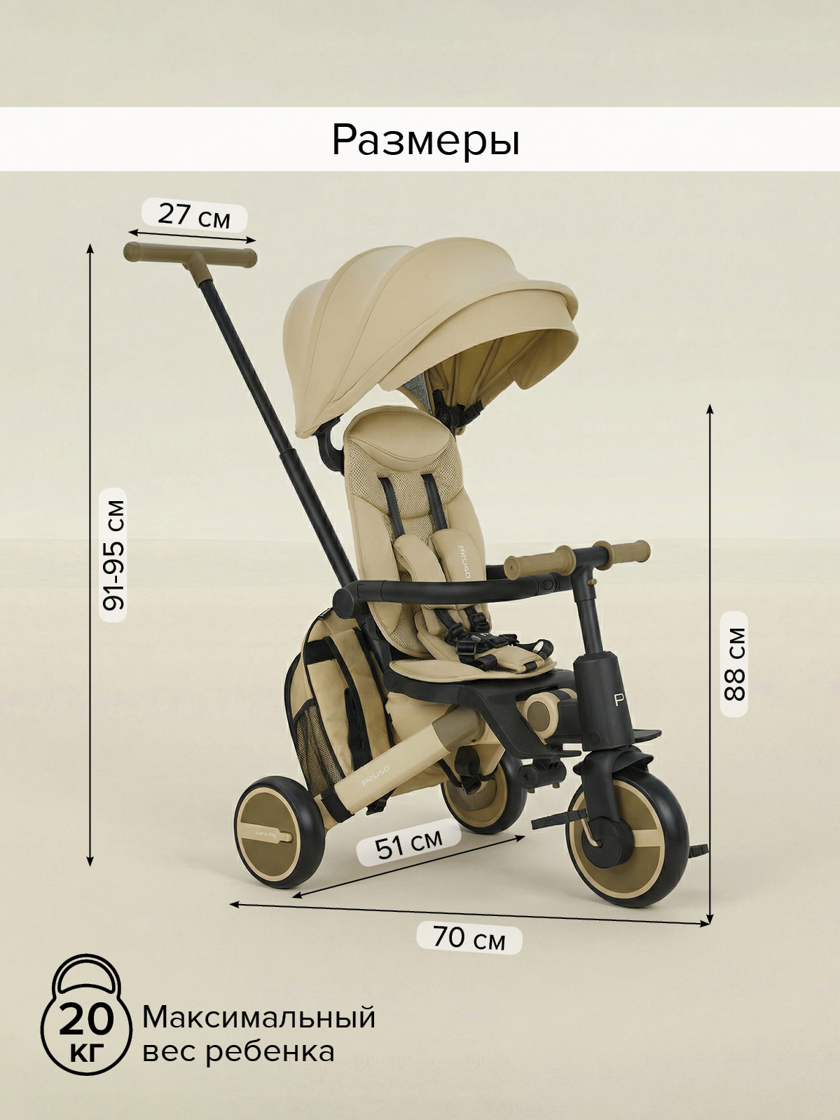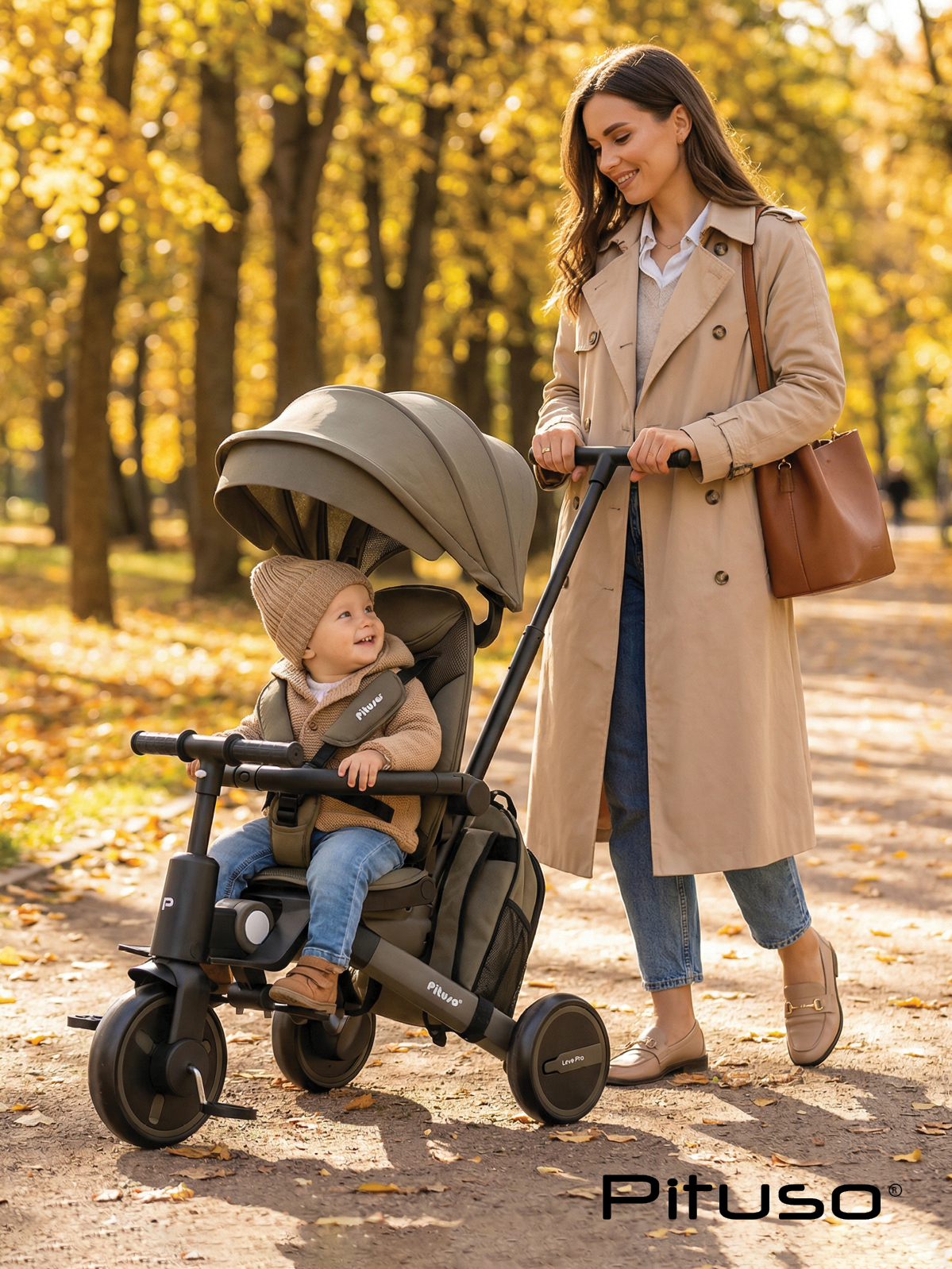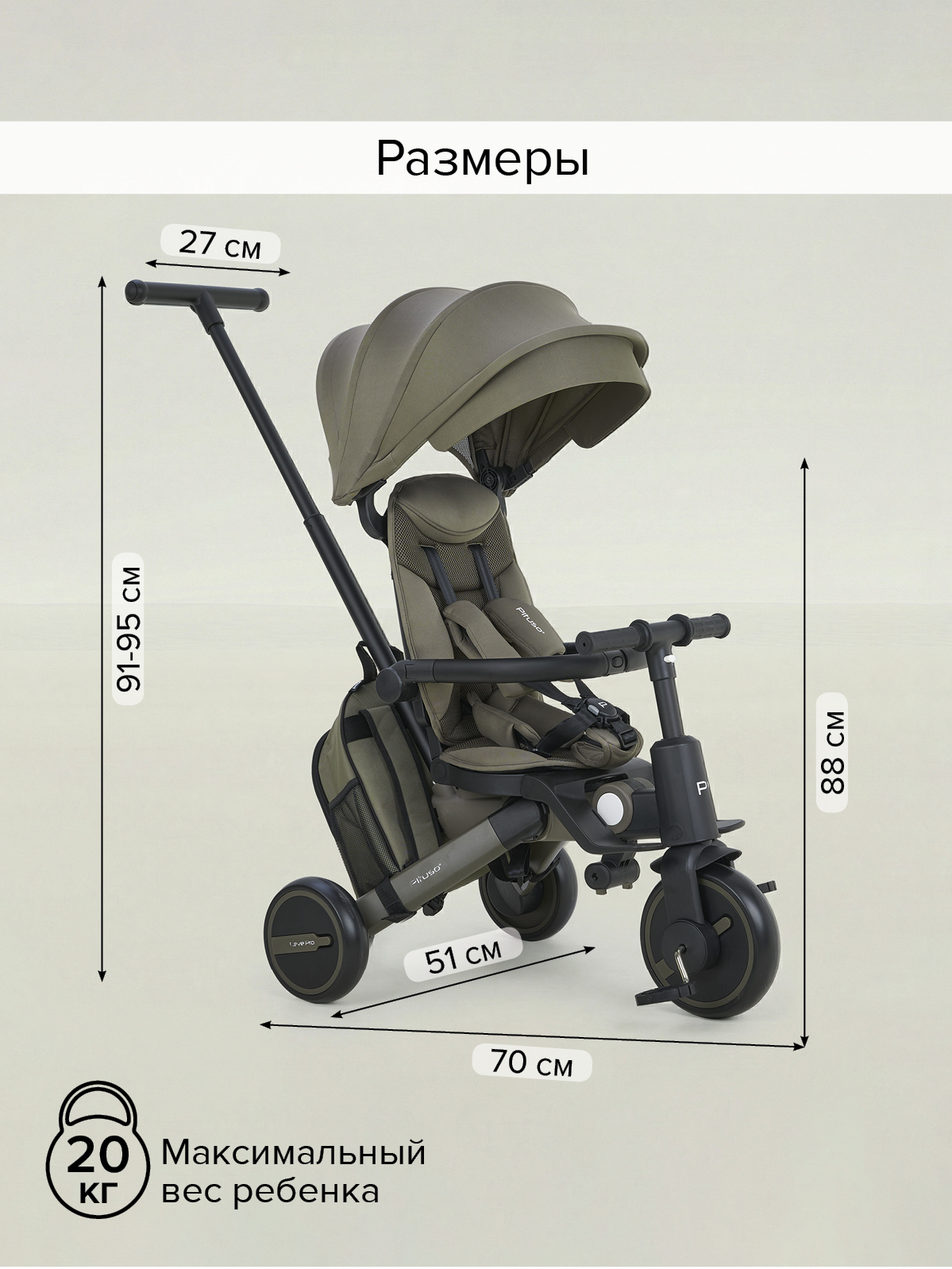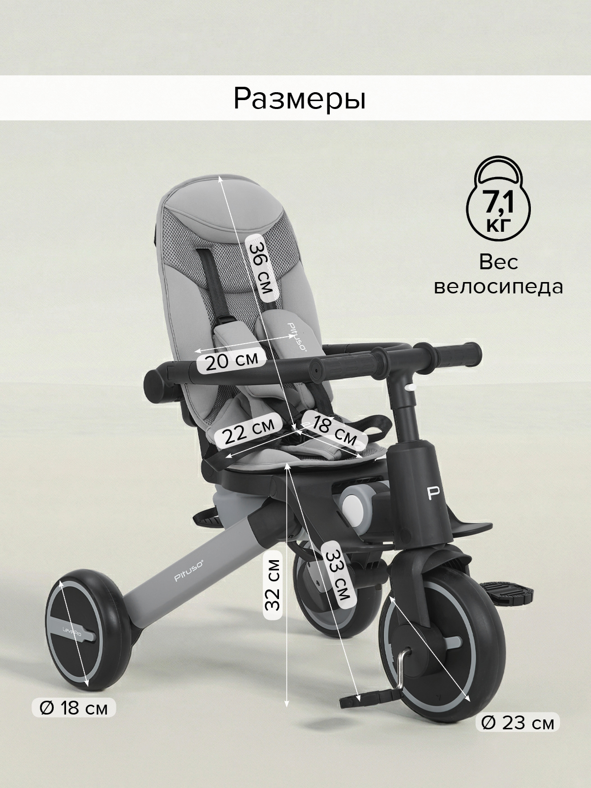 Новинка 2026 года сохраняет концепцию компактного складного 3х колесного велосипеда, но получила расширенный функционал и доработанный дизайн. Велосипед по-прежнему складывается до компактного размера, остается легким в переноске и транспортировке, но стал удобнее для малыша и практичнее для родителей. Обновленные материалы и внешний вид подчеркивают премиальное позиционирование модели в линейке Pituso.