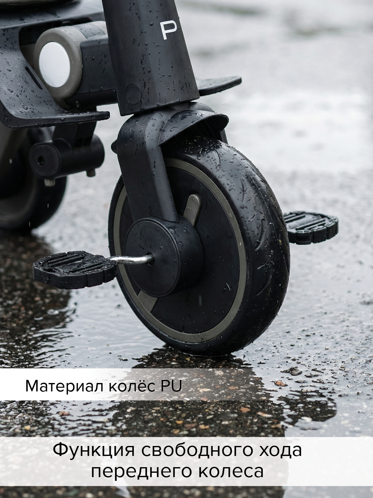 Полиуретановые колеса рассчитаны на ровные покрытия: асфальт, плитку, парковые дорожки, поэтому велосипед подходит и для городских прогулок, и для выездов в парки или на дачу при умеренном рельефе.