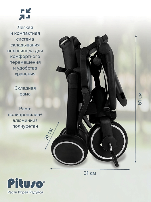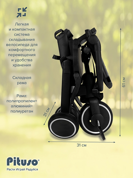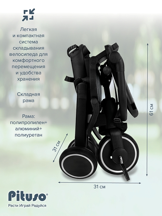 Складной трехколесный велосипед Pituso Leve Pro, очень легкий ,