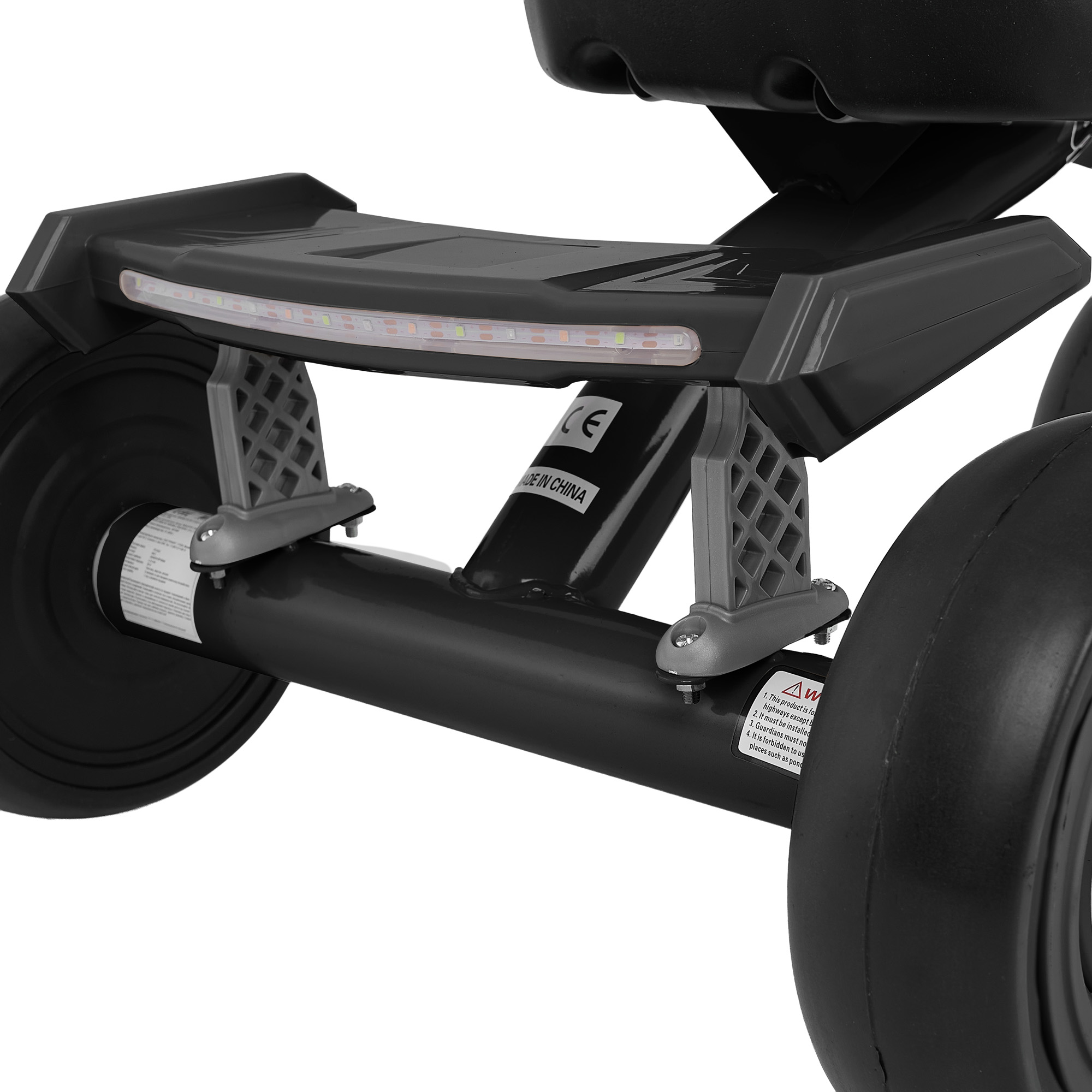 - Уход: колёса и раму достаточно периодически протирать влажной салфеткой, защищать элементы подсветки и музыки от сильной влаги.