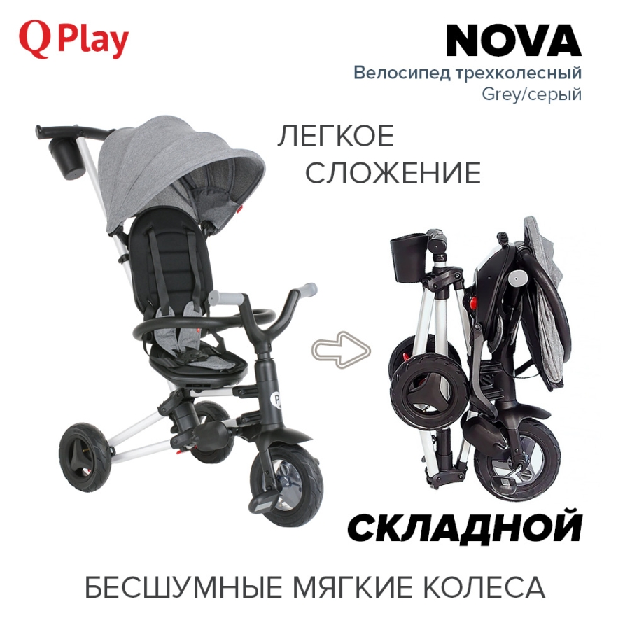 Велосипед трехколесный складной QPlay Nova Grey серый