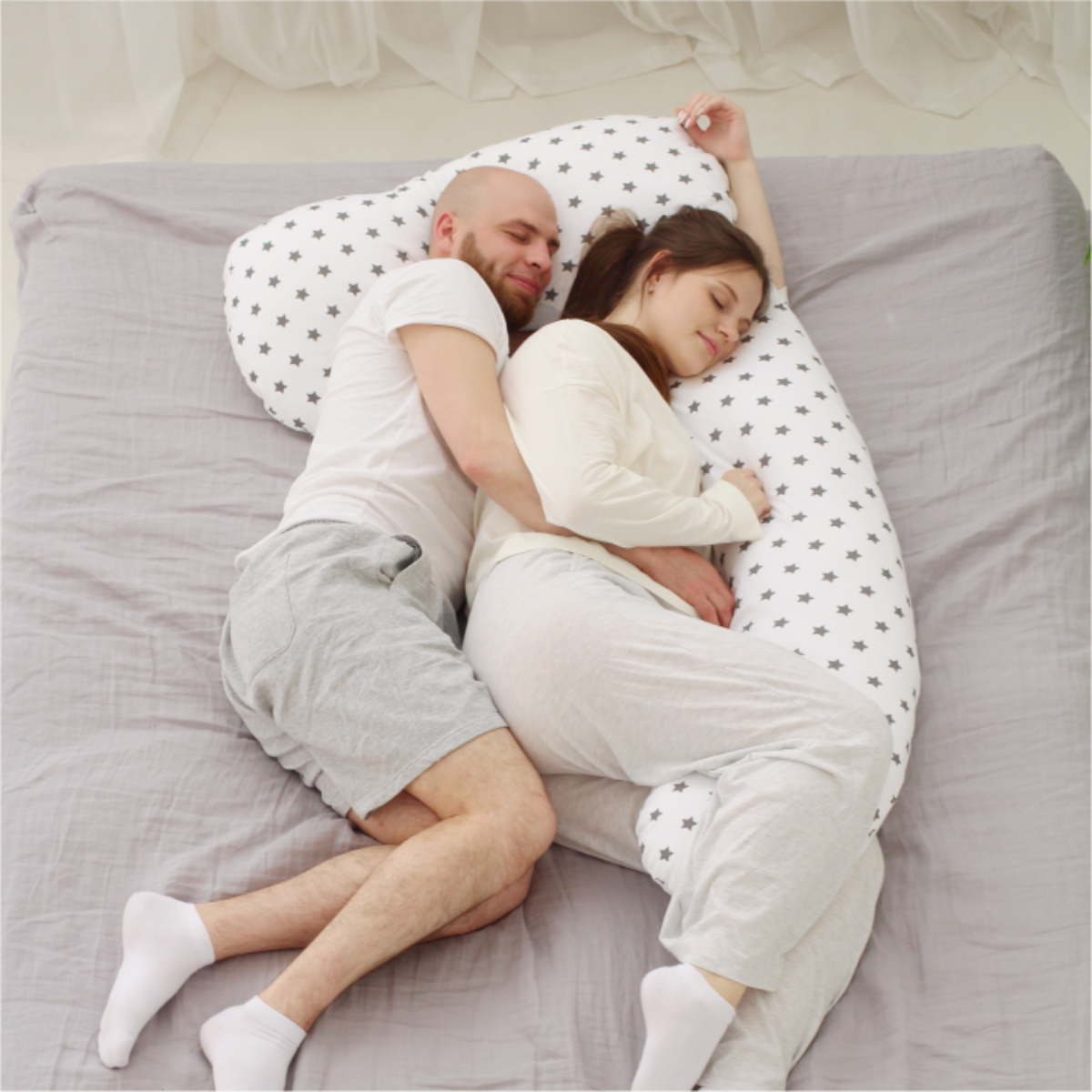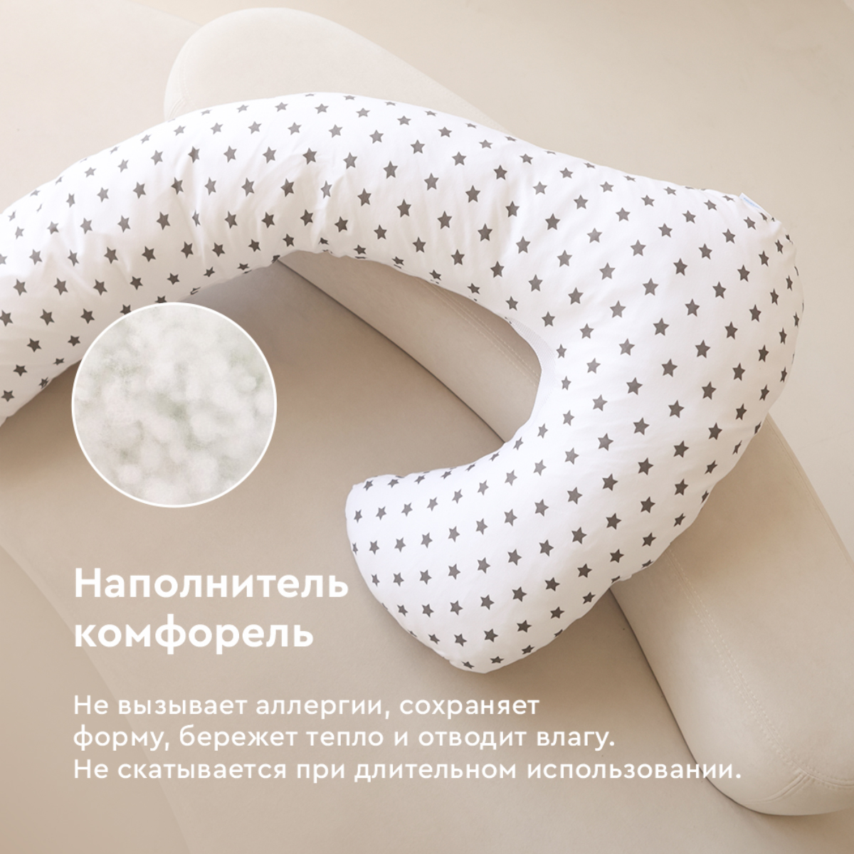 Изогнутая форма повторяет естественную линию тела во время сна, с одновременной поддержкой головы и живота