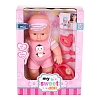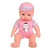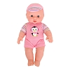В комплекте: Пупс с одеждой - 1 шт., игрушка-погремушка -1 шт., тарелка-1шт., ложка - 1 шт., вилка-1 шт.