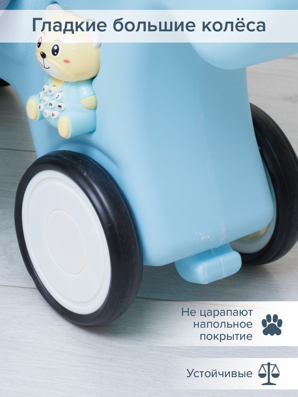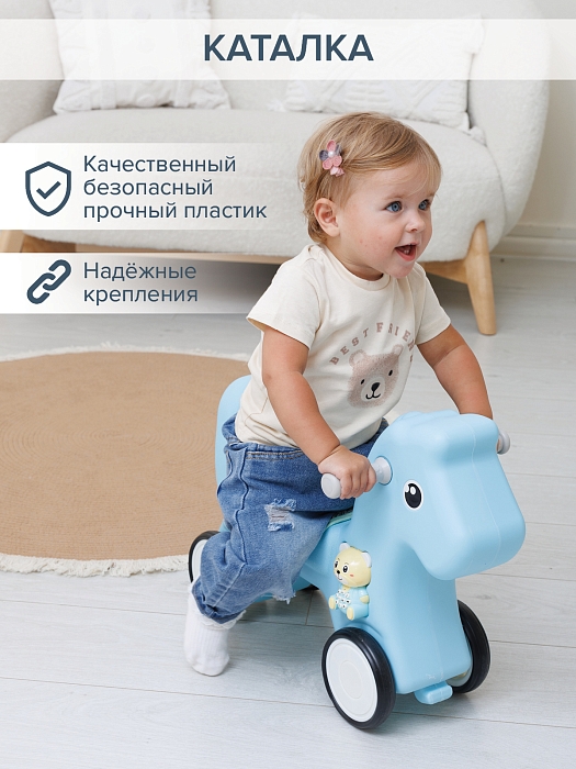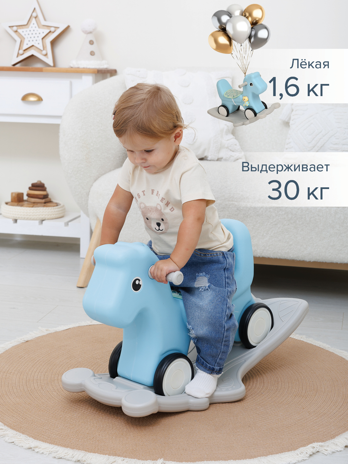 Качалка оснащена съемным поддоном, превращающим её в каталку с открытыми колёсами.