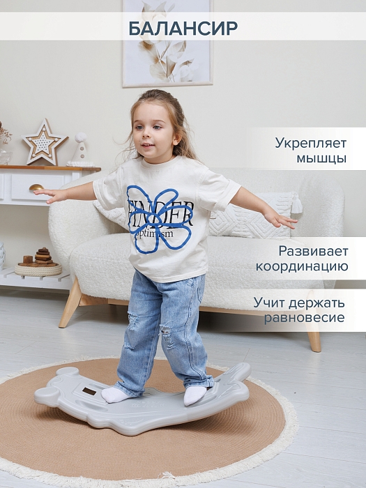 Качалка стимулирует моторные навыки, развивает вестибулярный аппарат, ловкость и координацию движений. Она изготовлена из прочного, экологически безопасного пластика и безопасна для детей.