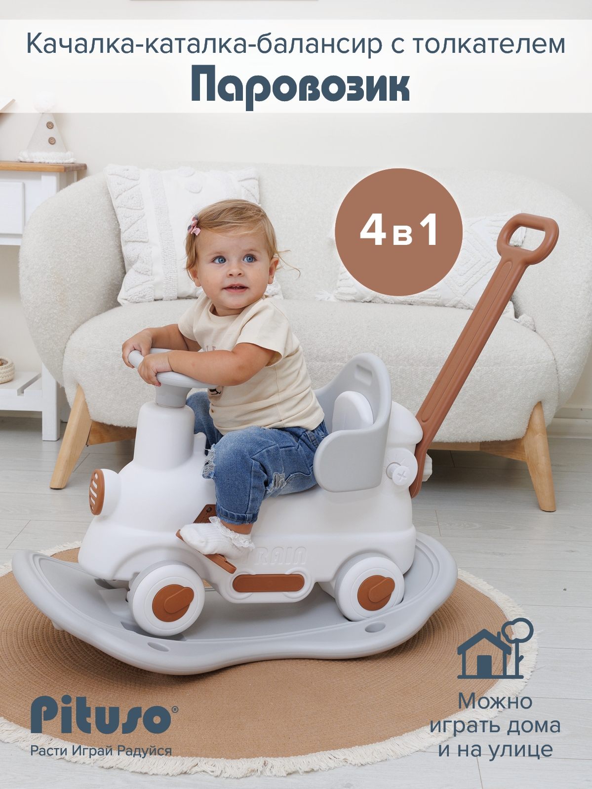 Качалка-каталка Pituso Паровозик с толкателем Grey/Серый