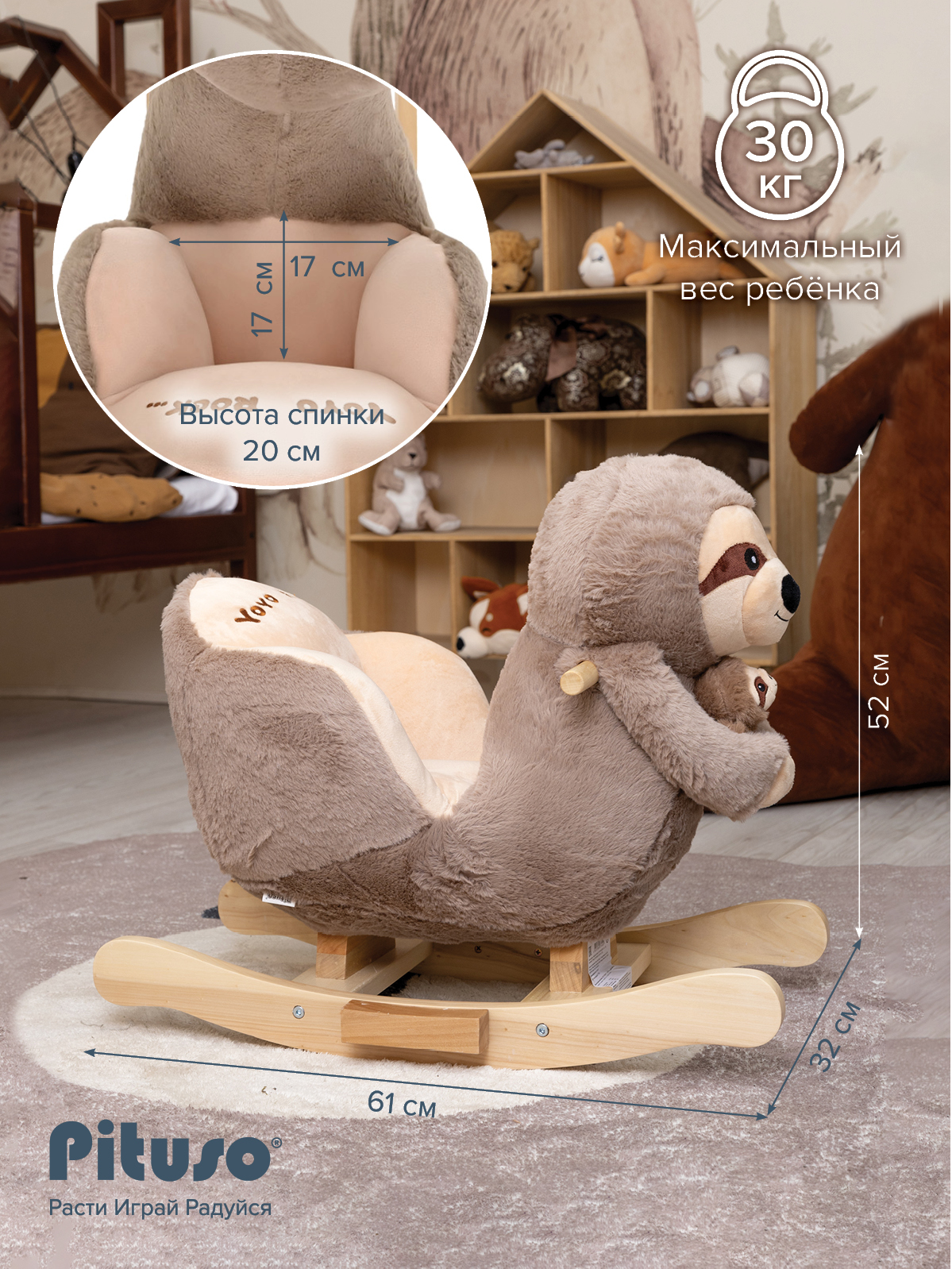 Технологи продумали конструкцию таким образом, что качалка будет безопасна для самых маленьких, а это начало самого любознательного периода, когда малыши познают мир на ощупь.