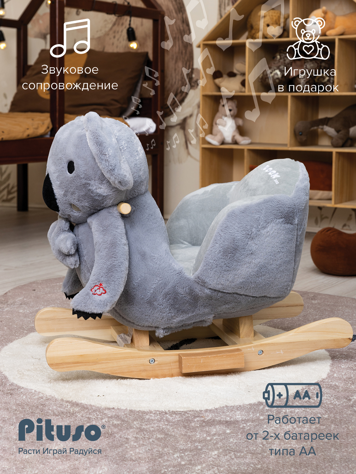 Звуковое сопровождение, работает от 2-х батареек типа АА (в комплект не входят)