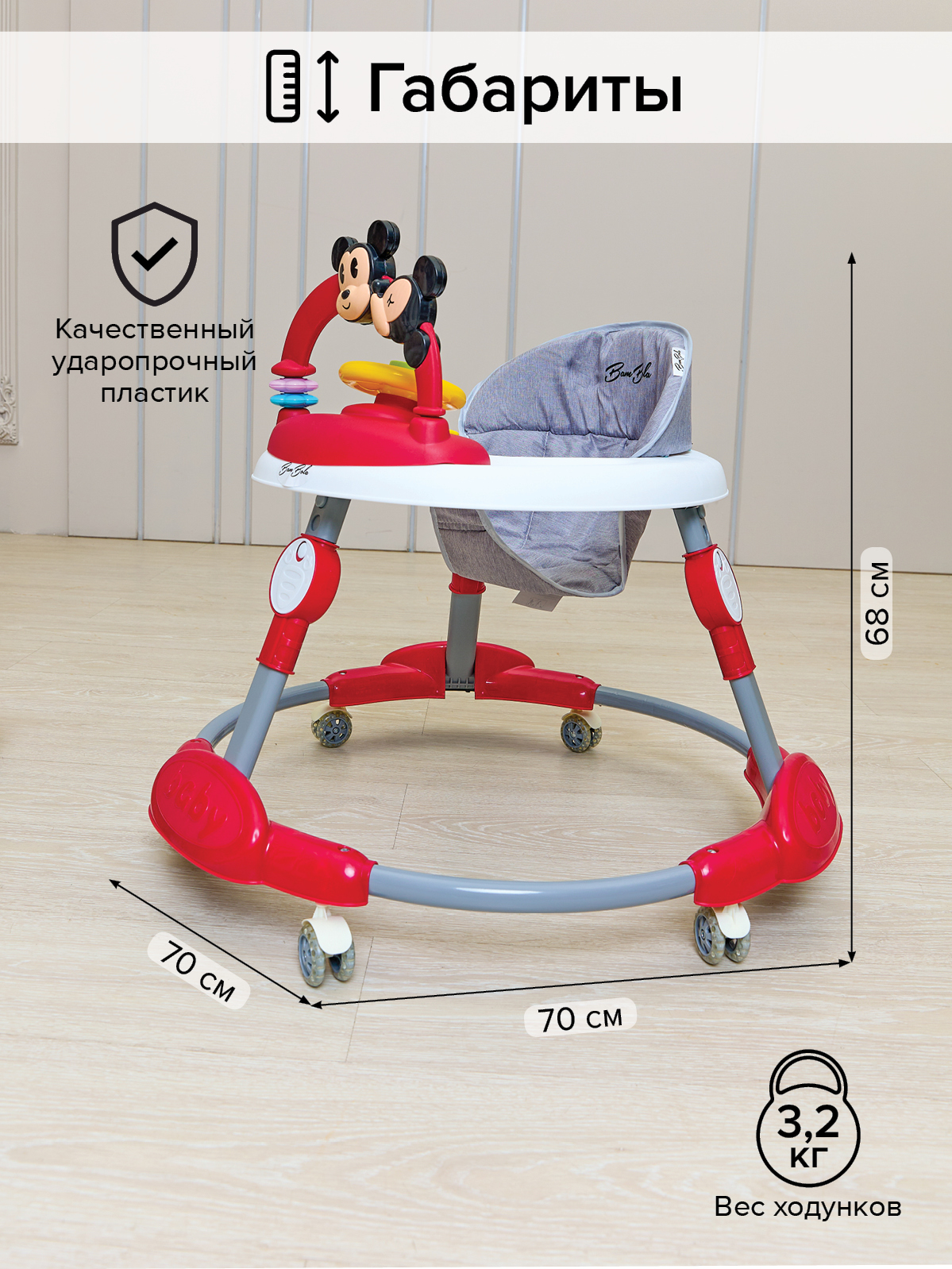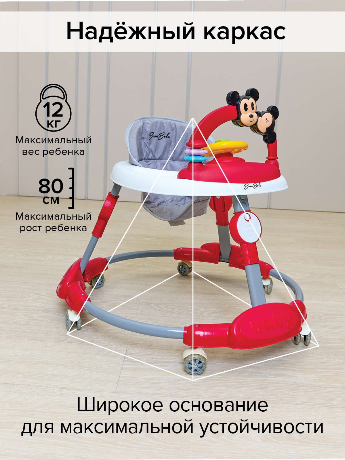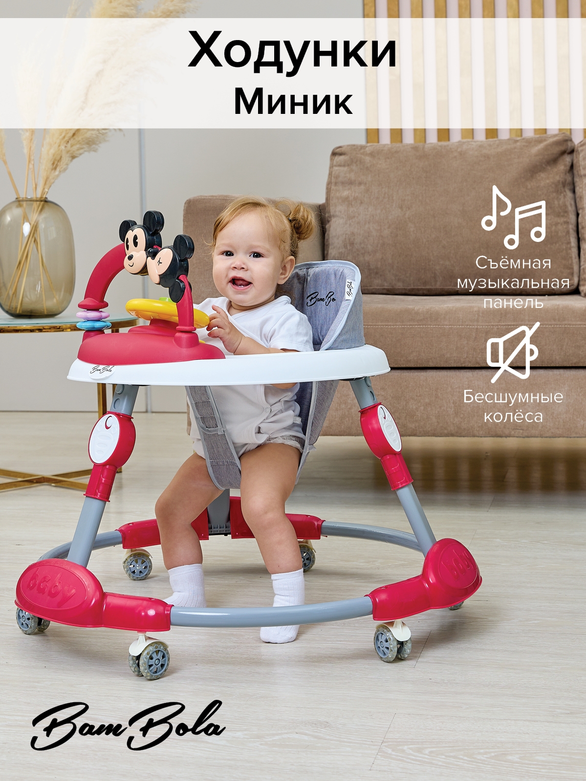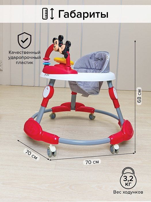Ходунки Bambola подготовят малыша к первым самостоятельным шагам, развивают координацию движений и помогают ребенку научиться держать равновесие. Используя ходунки ребенок начинает ходить раньше.
