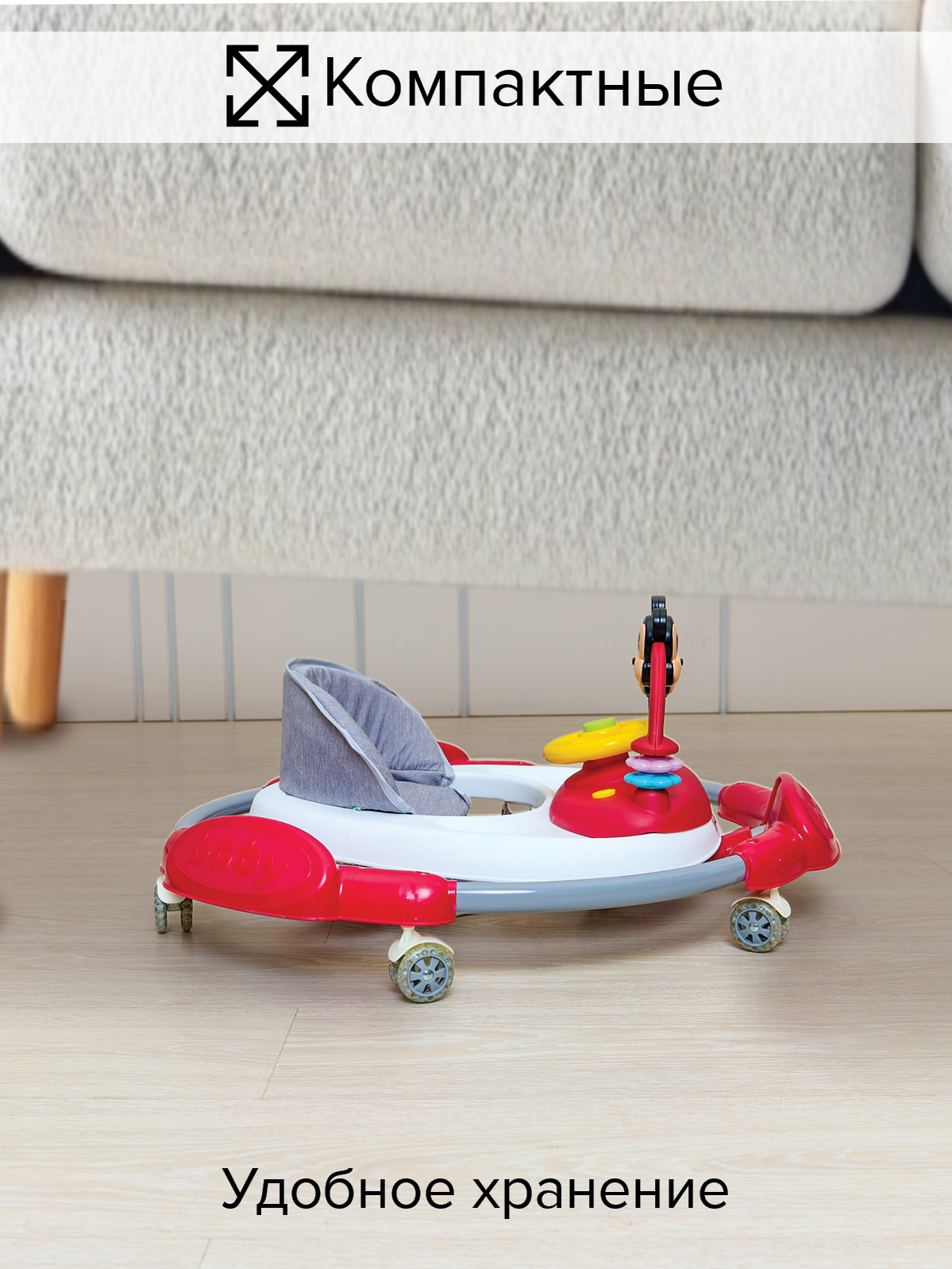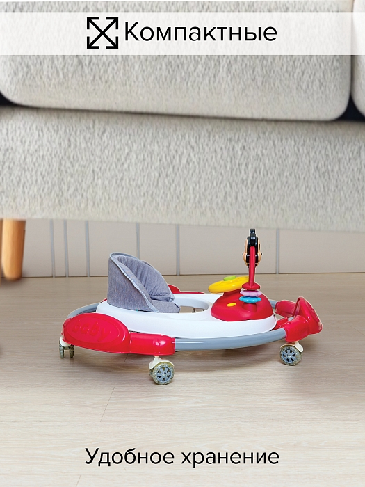 Они имеют съемную музыкальную игровую панель. При необходимости игровую панель можно снять, тогда ходунки превращаются в столик для кормления. Мягкое, удобное сиденье. Ходунки легко регулируются в зависимости от роста ребенка.