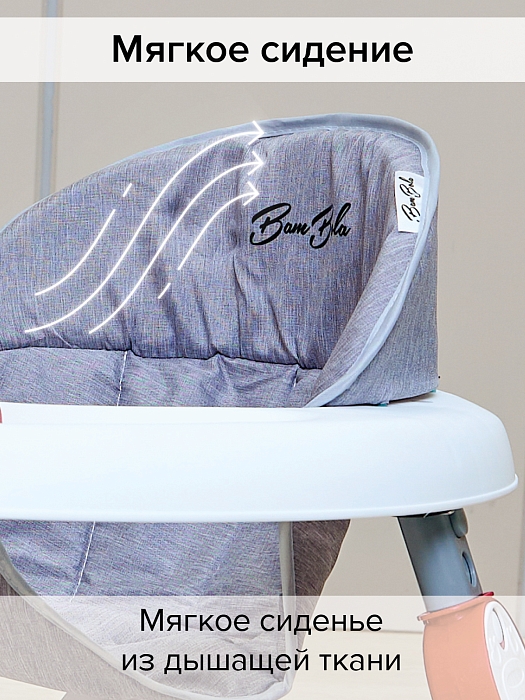 - мягкое сиденье надежно крепится к раме, при необходимости можно снять и постирать