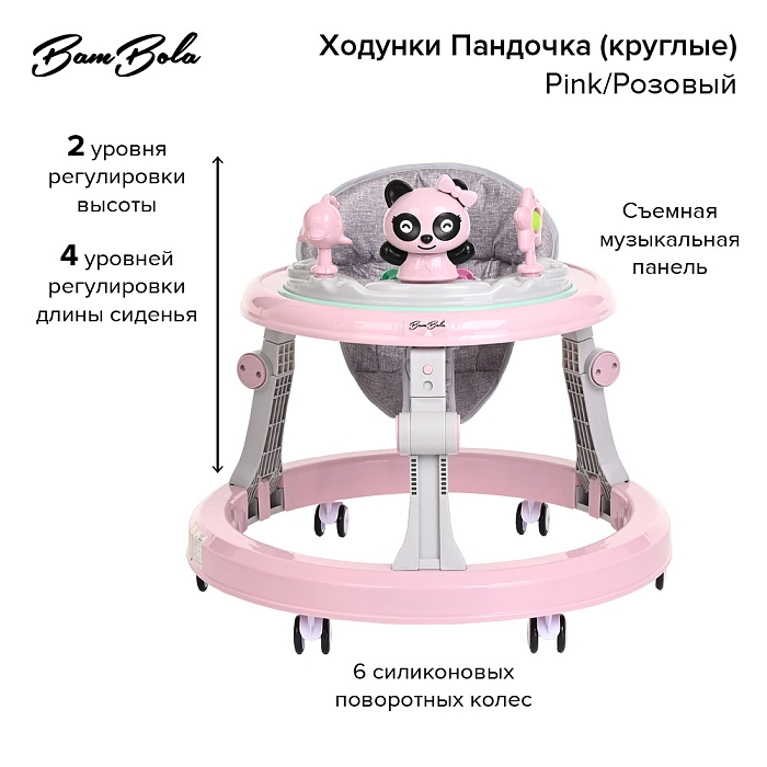 Ходунки Bambola Пандочка (круглые) Pink/Розовый