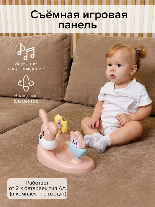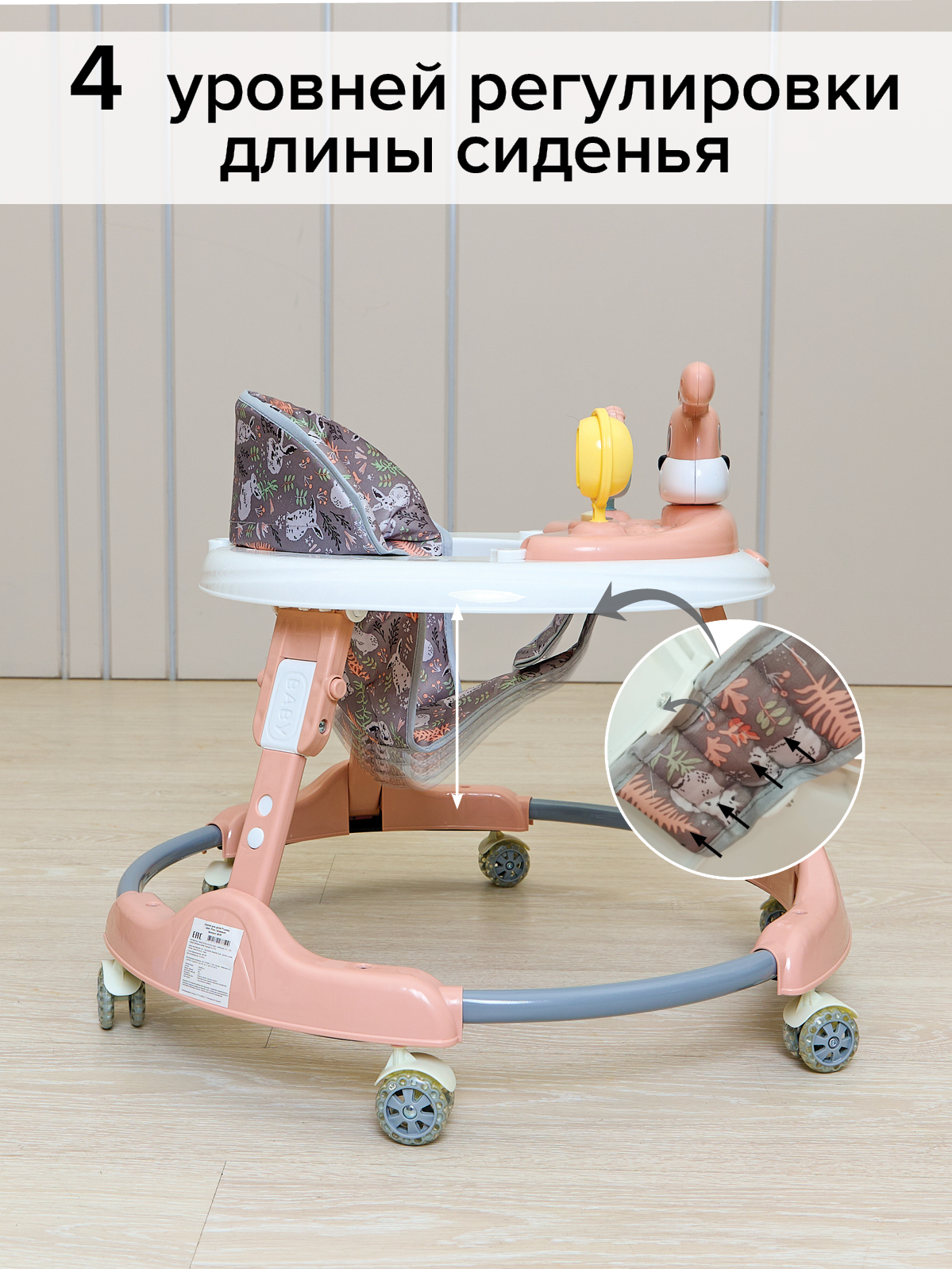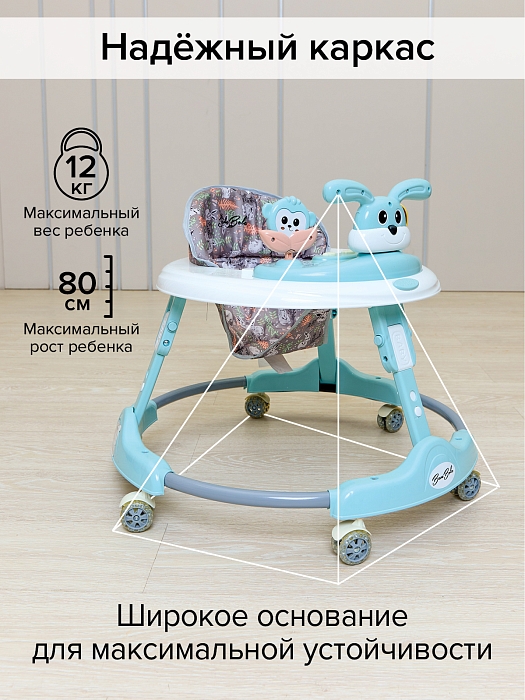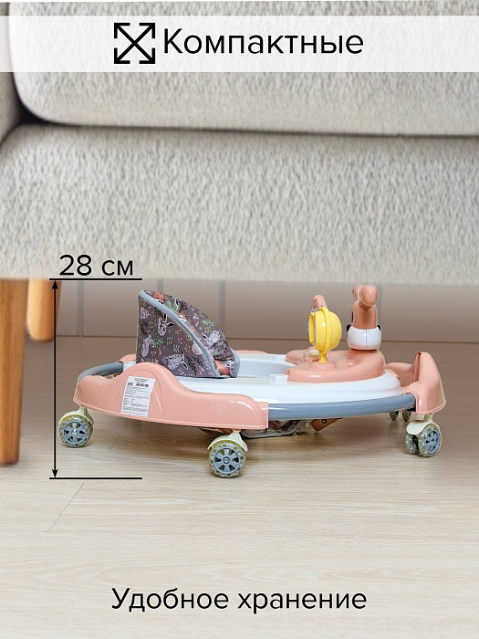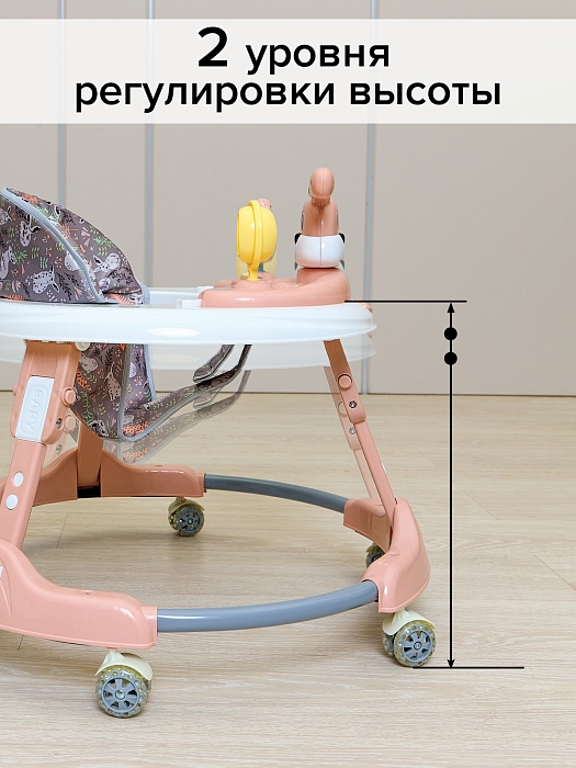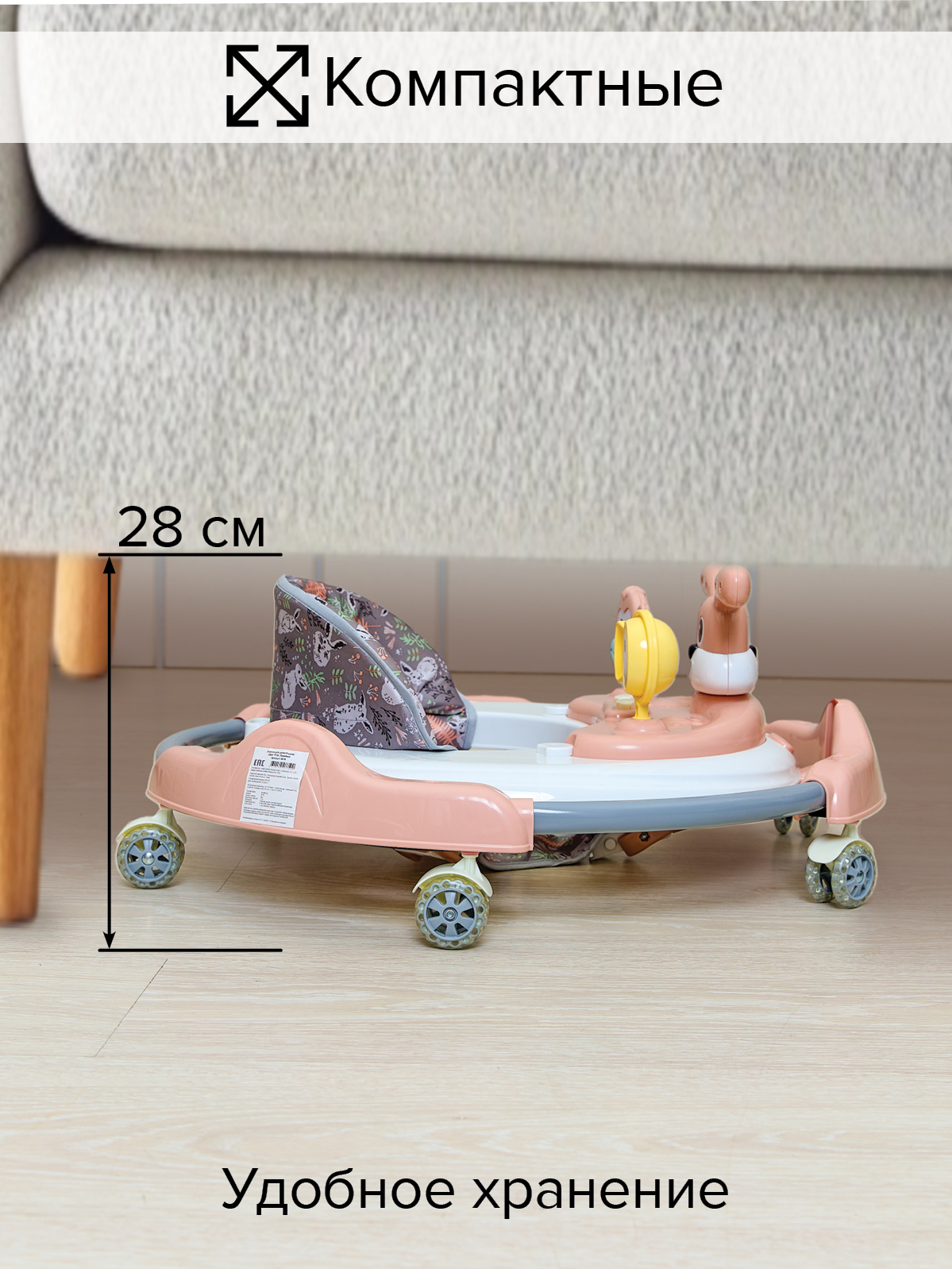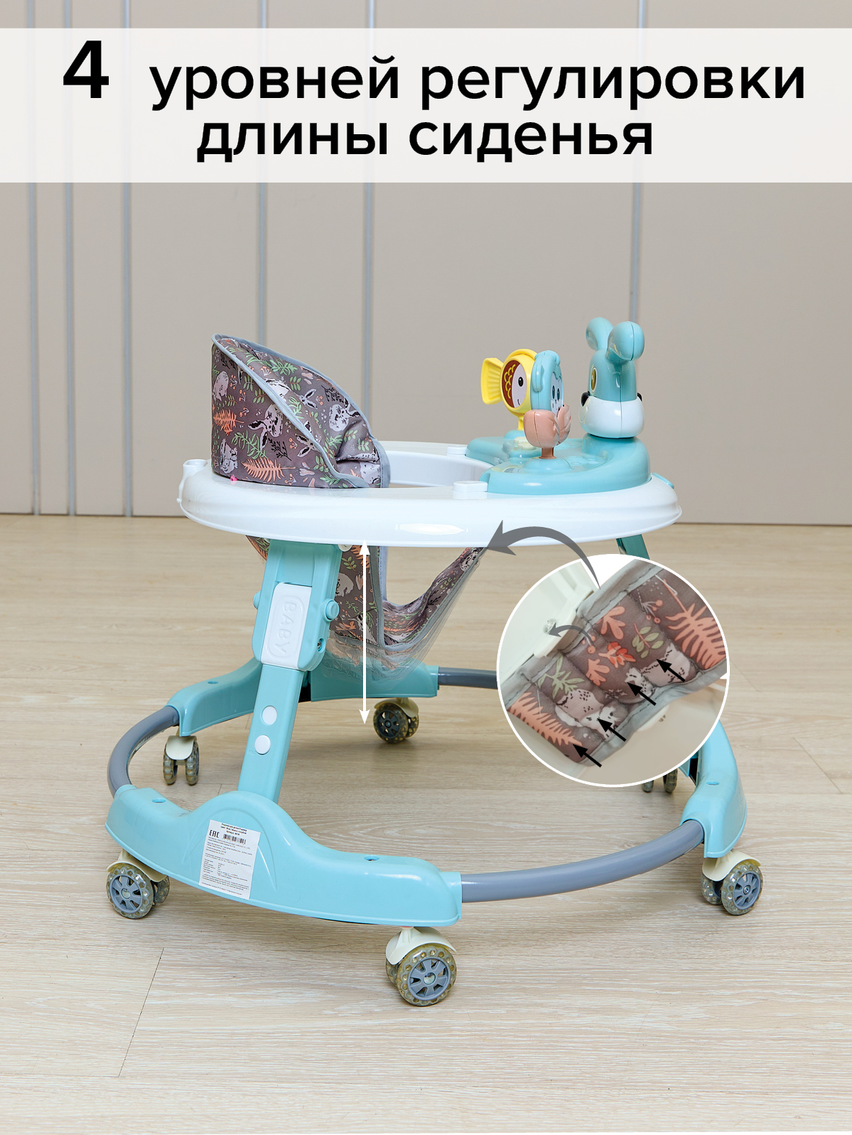 Они имеют съемную музыкальную игровую панель. При необходимости игровую панель можно снять, тогда ходунки превращаются в столик для кормления. Мягкое, удобное сиденье. Ходунки легко регулируются в зависимости от роста ребенка.