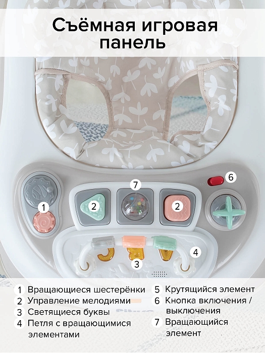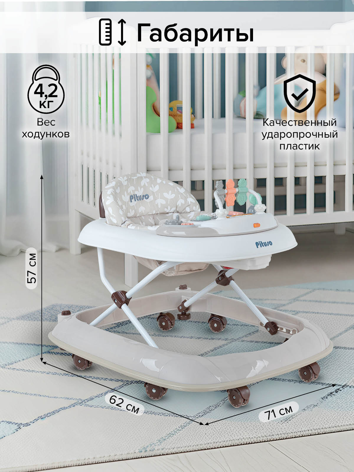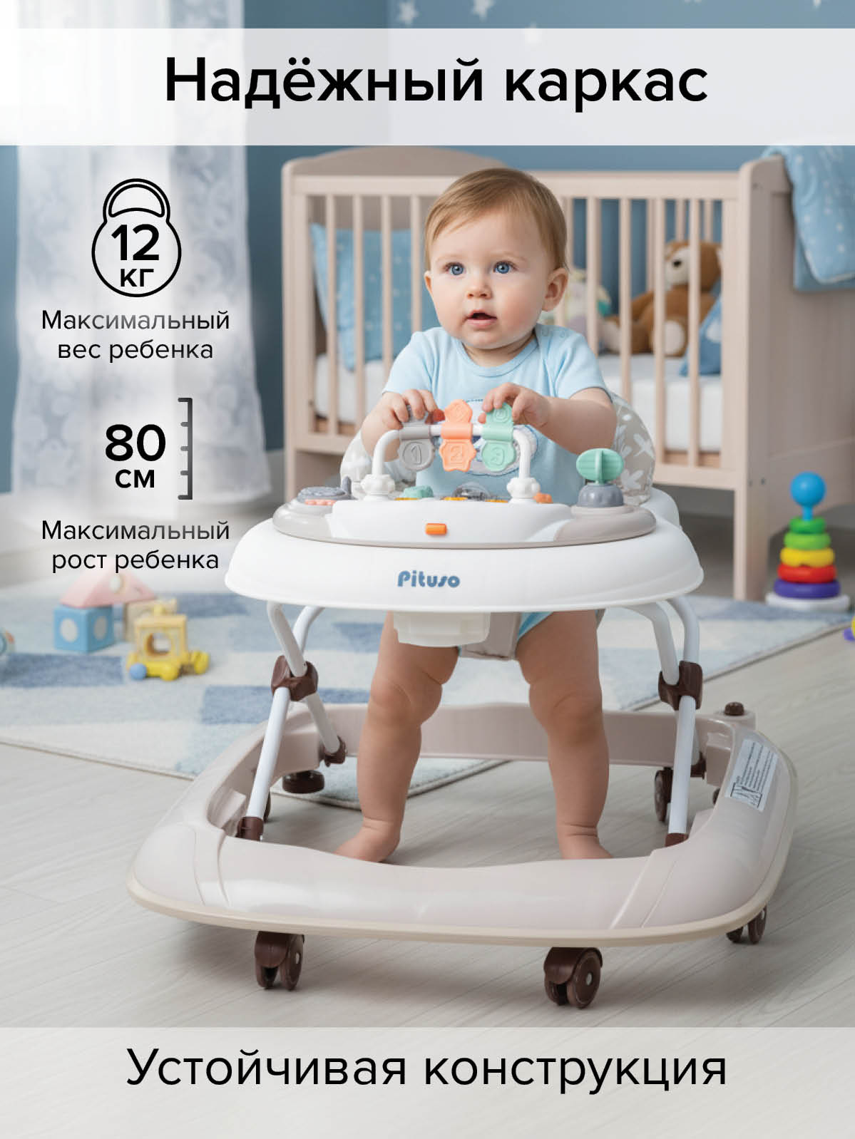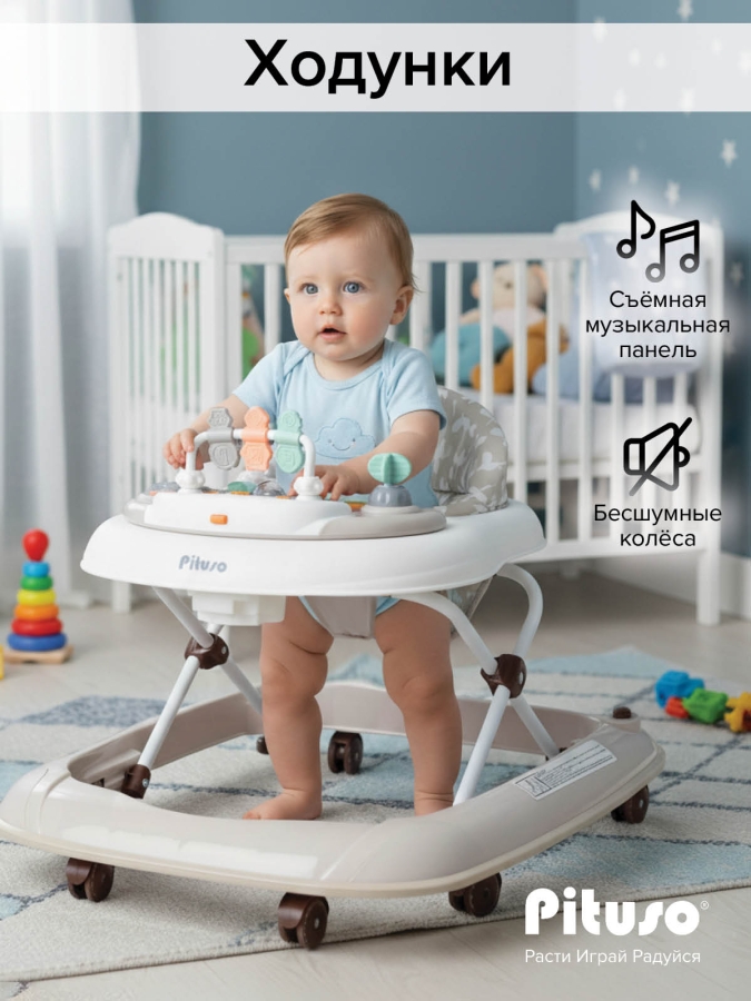 Ходунки Pituso ABC – отличный помощник для подготовки малыша к первым самостоятельным шагам, развивают координацию движений и помогают ребенку научиться держать равновесие. Ходунки легко регулируются в зависимости от роста ребенка, что способствует правильной постановке стопы при передвижении. Эргономичная форма сидения с поддержкой спины обеспечит правильную посадку ребенка. Съемная музыкальная панель с игрушками способствует развитию у малыша мелкой моторики, можно использовать отдельно от ходунков.