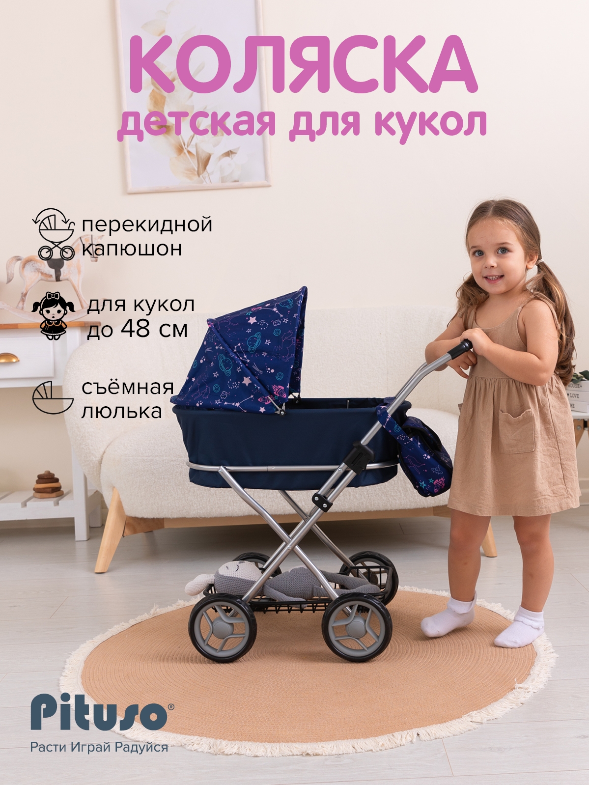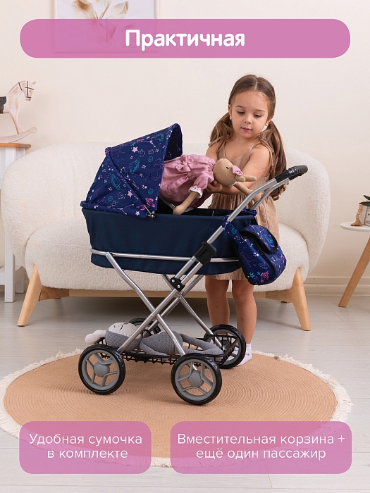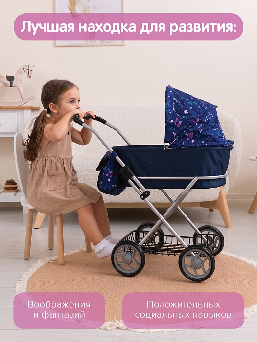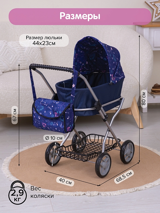 Кукольная коляска Pituso Starry sky/ Звезды/Синий