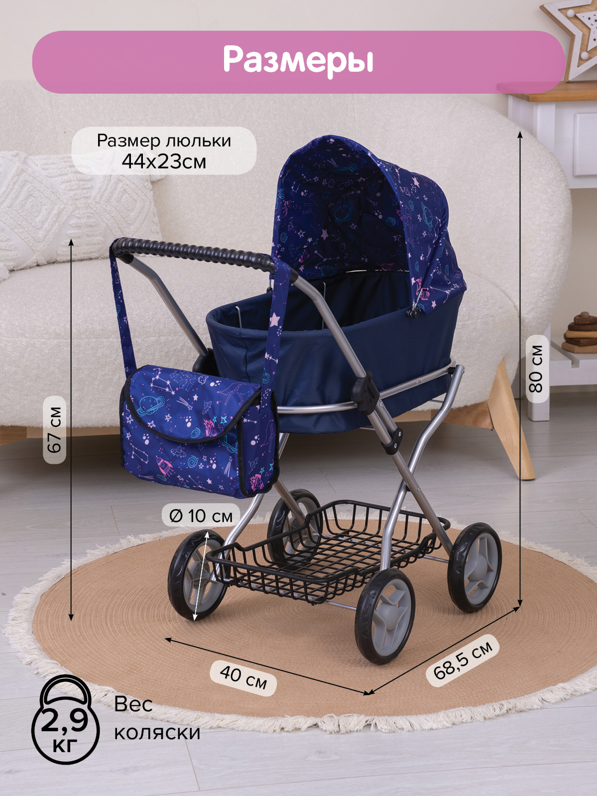 Размеры коляски 68,5х40х80см
