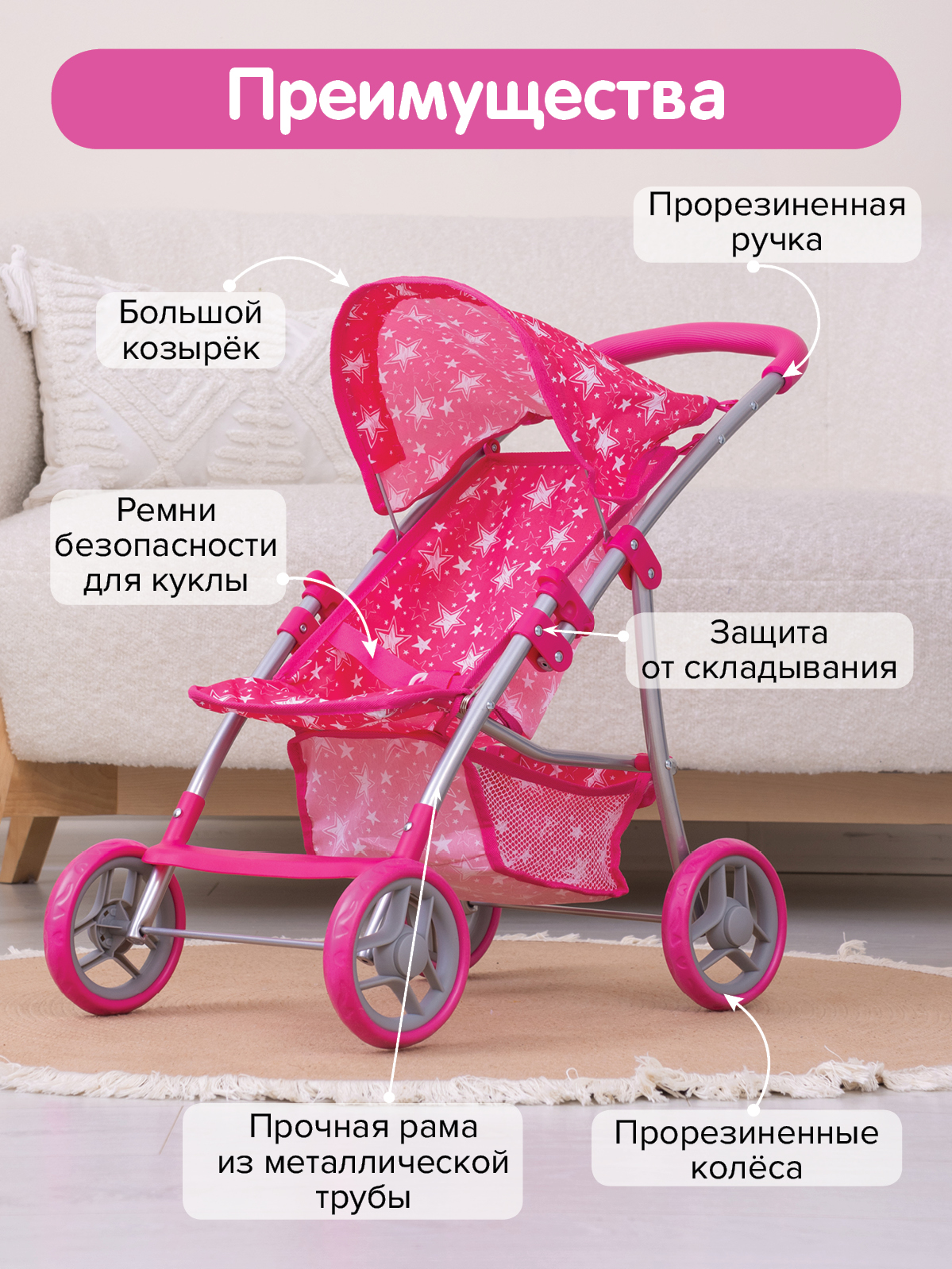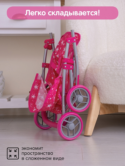 Кукольная коляска Pituso Stars/Pink/Звезды/Розовый
