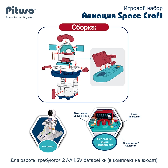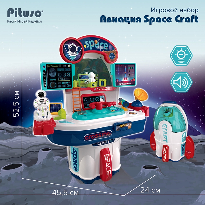 Космический набор Pituso Авиация "Космический корабль" со световыми и звуковыми эффектами перенесет ребенка в мир звезд, планет и галактик и поможет почувствовать себя маленьким космонавтом.