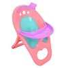 Этот малыш очень послушный: его легко приучить к гигиене, достаточно напоить пупса из бутылочки водой, а затем посадить на розовый горшок.