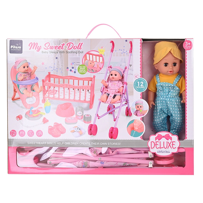 Набор Pituso Пупс с аксессуарами+кроватка+коляска+стул