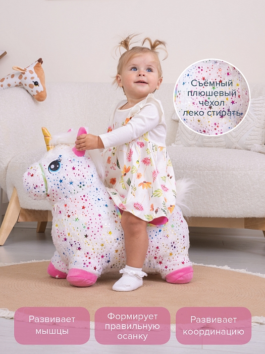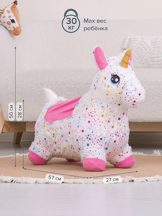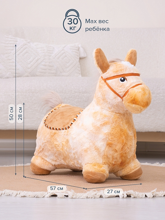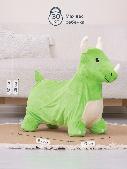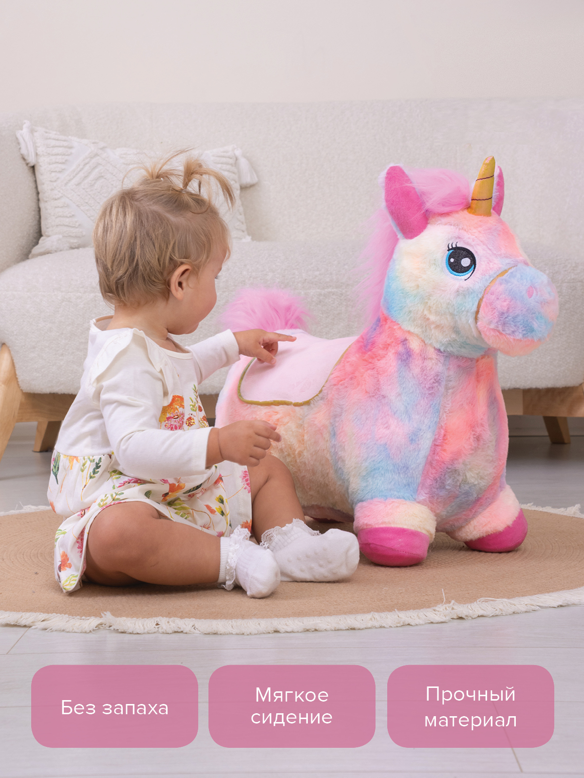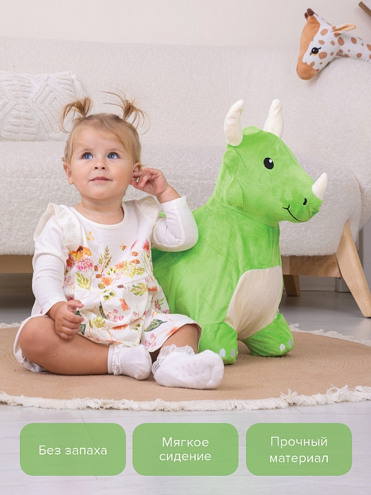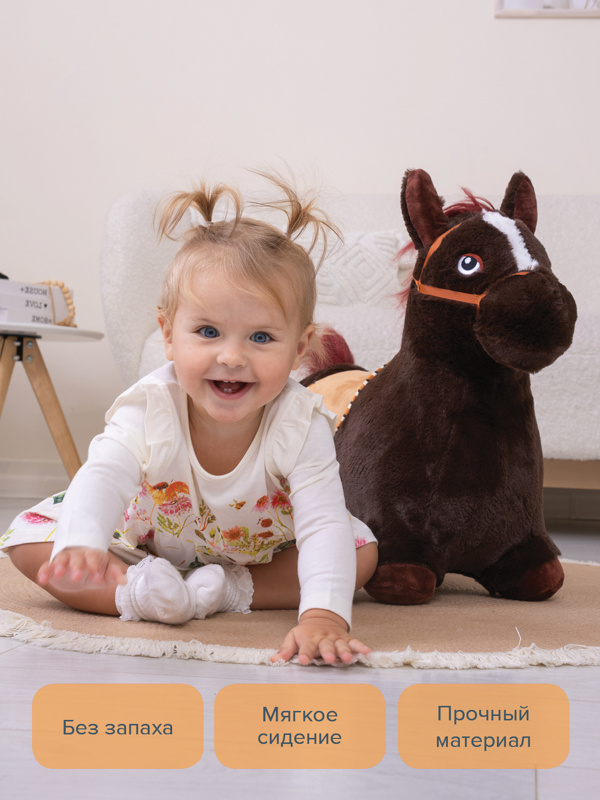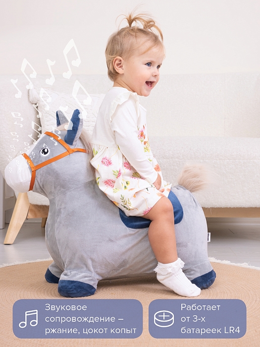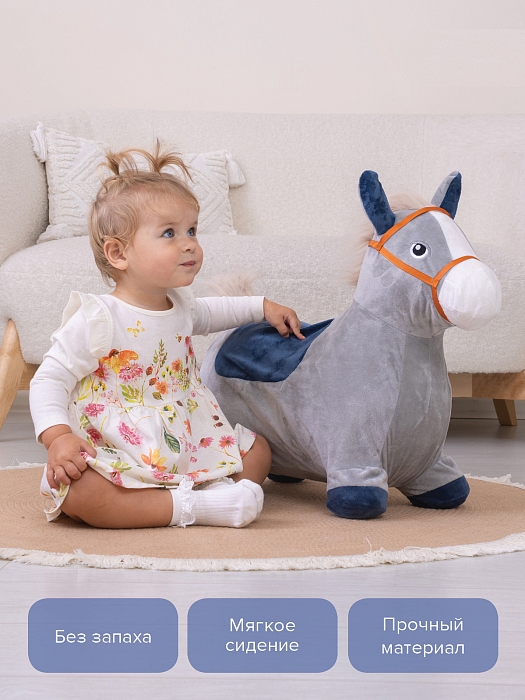 Благодаря удобной форме игрушки, малыш сможет комфортно на ней разместиться держась за ушки и прыгать, отталкиваясь ногами.