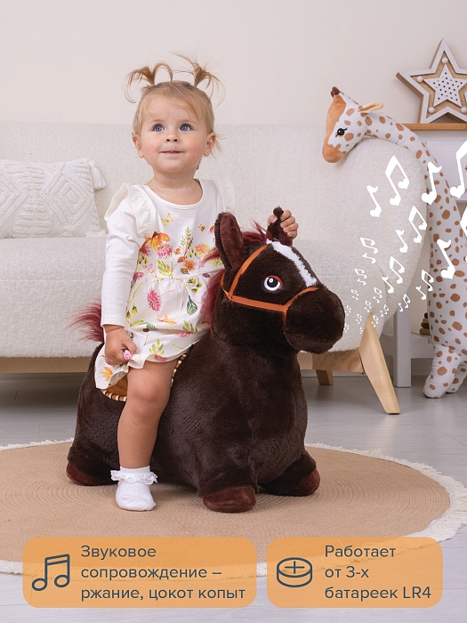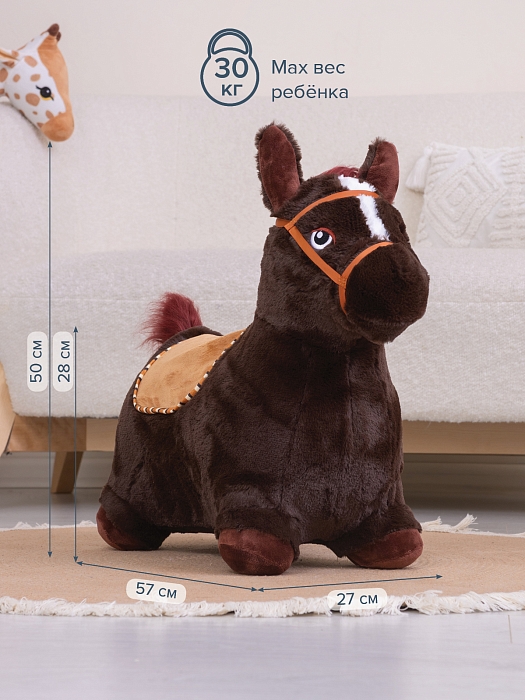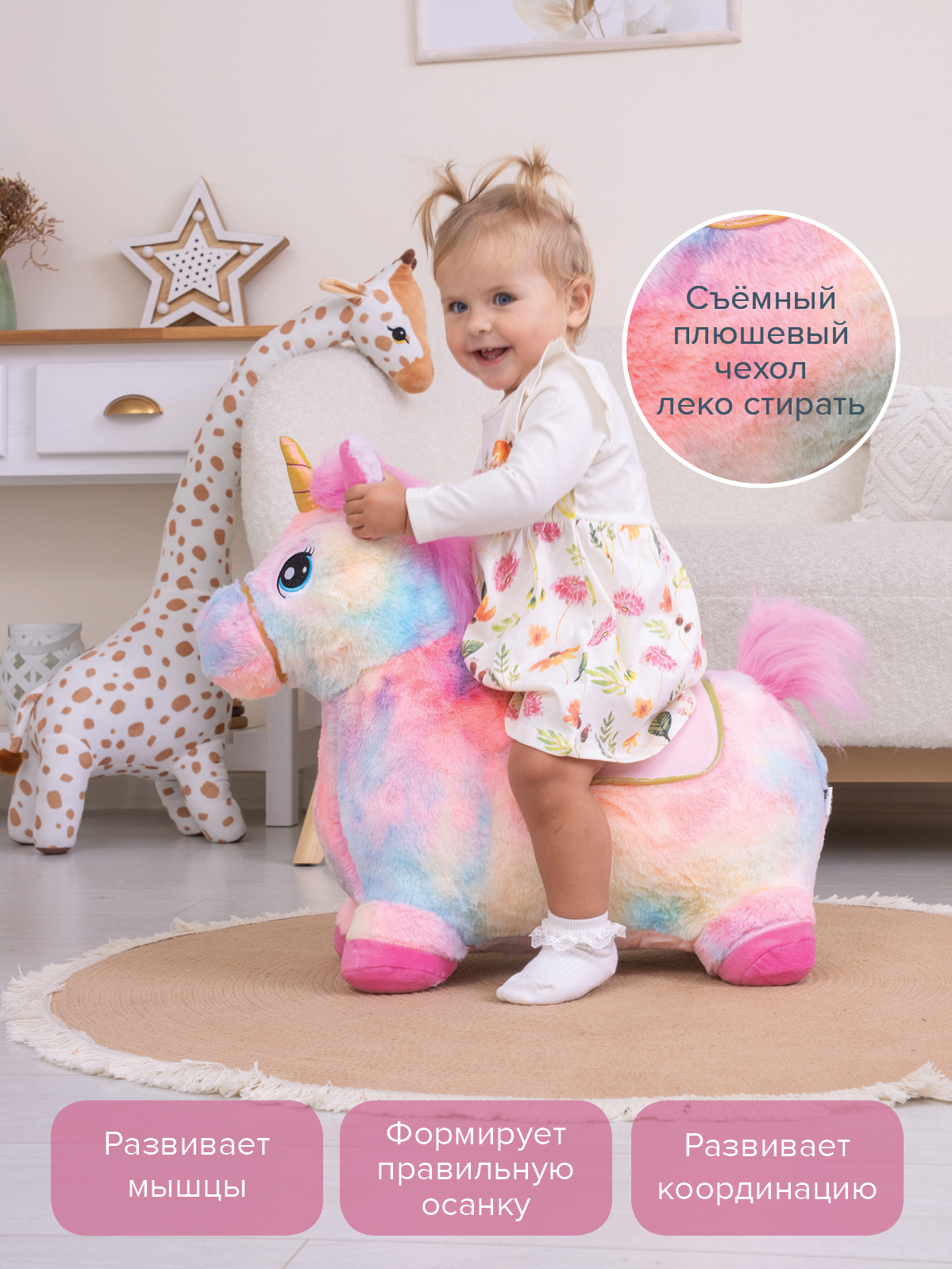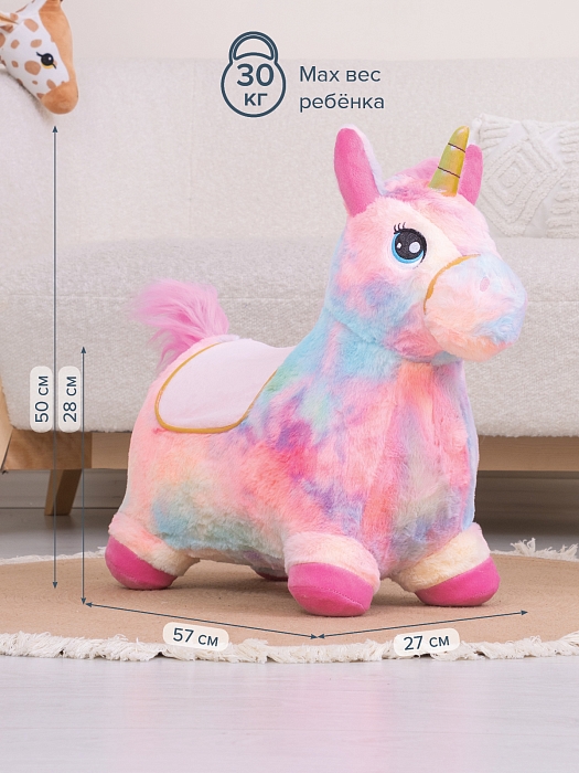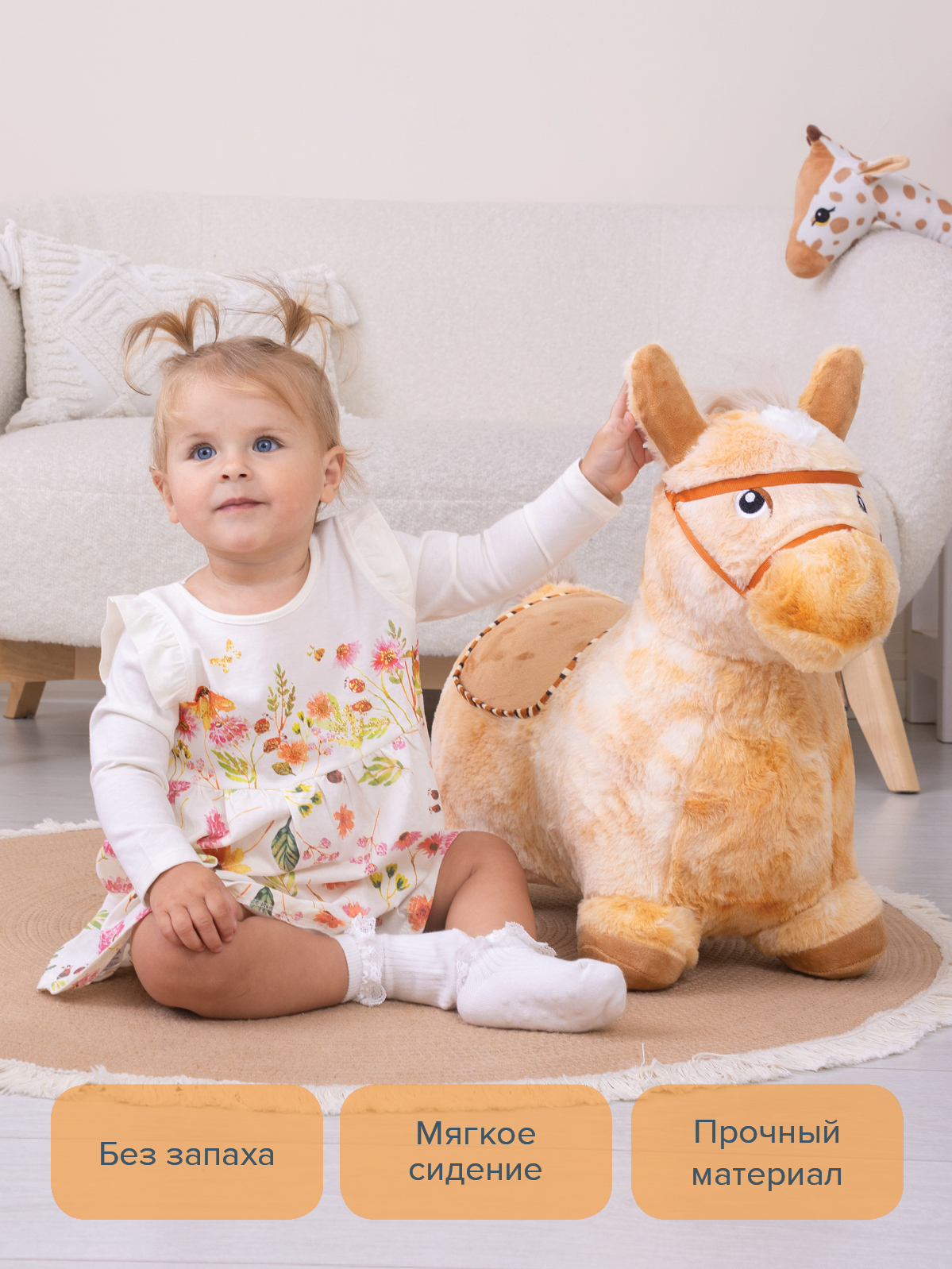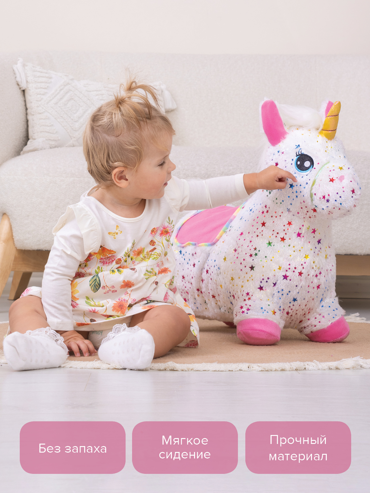 Благодаря удобной форме игрушки, малыш сможет комфортно на ней разместиться держась за ушки и прыгать, отталкиваясь ногами.