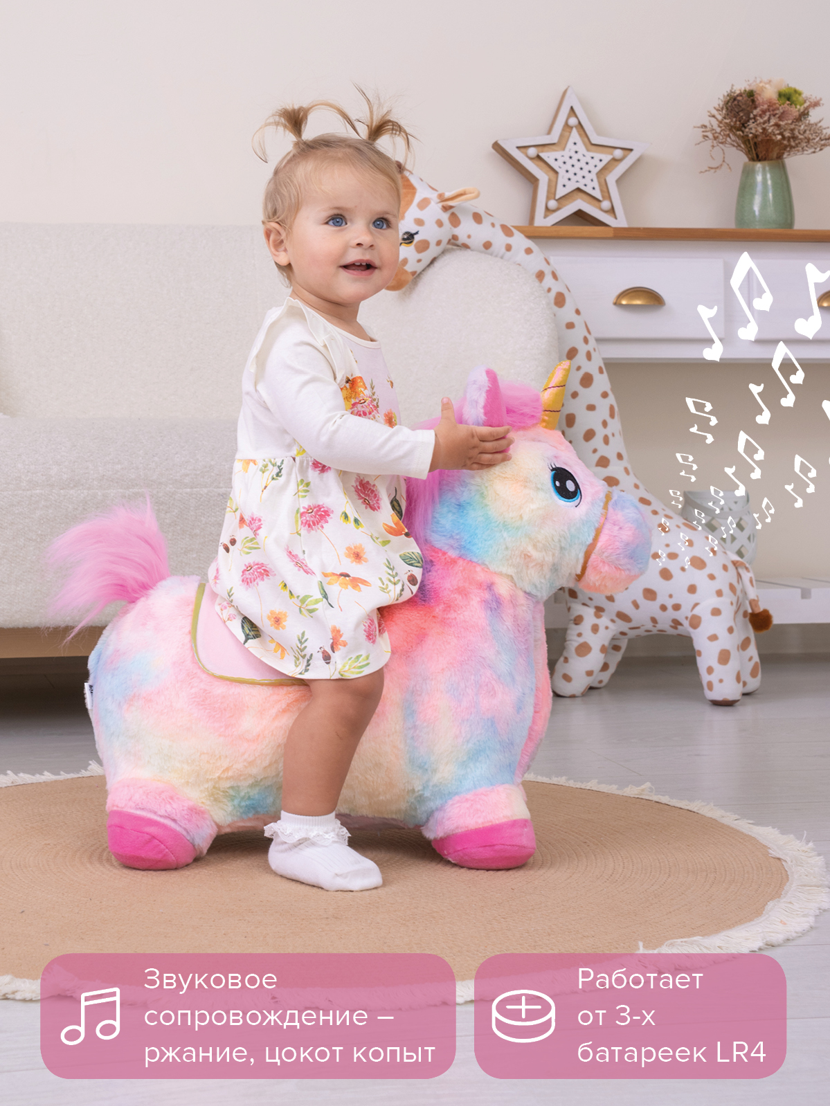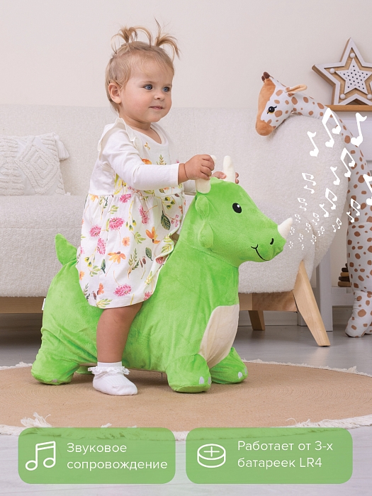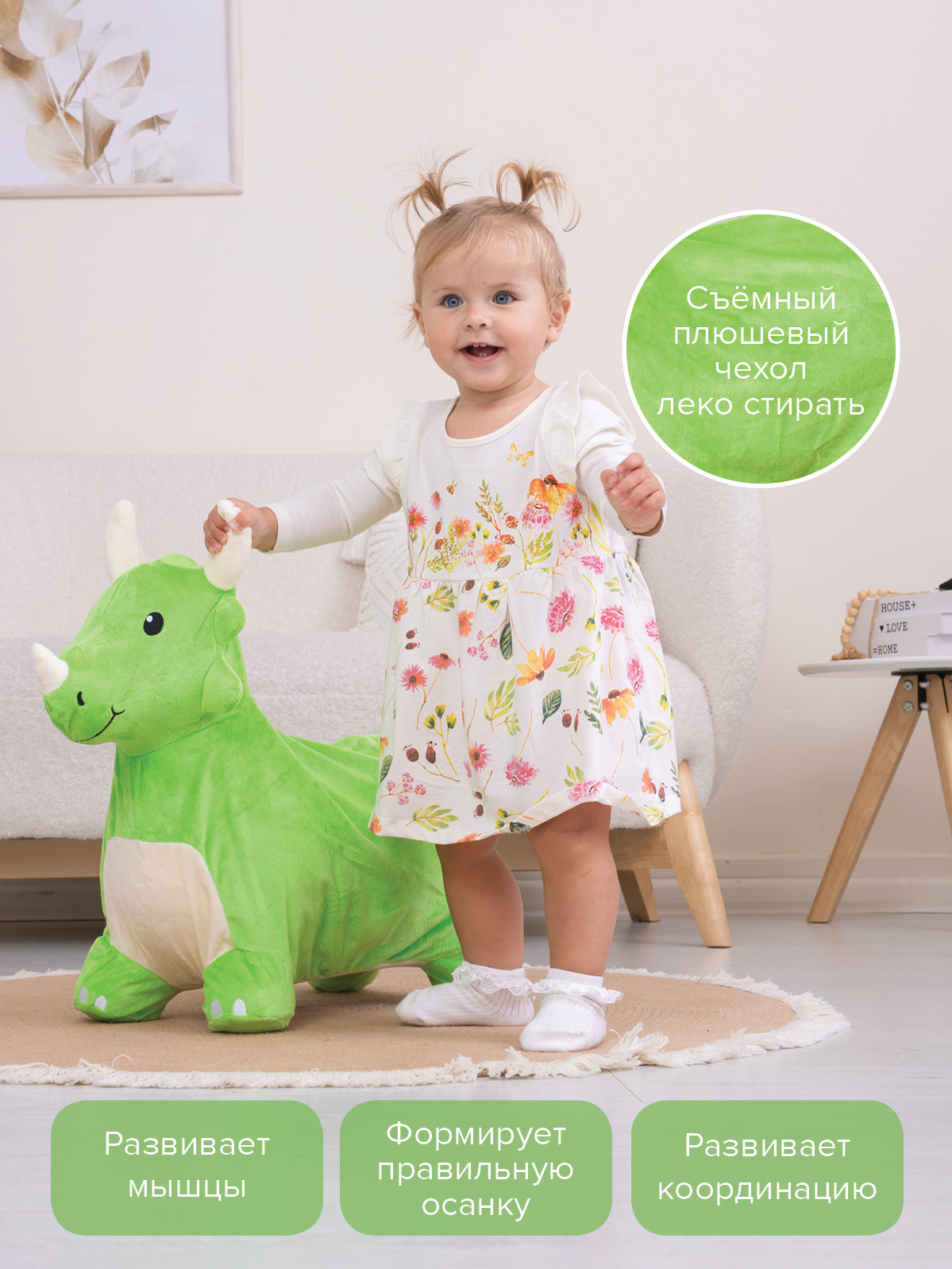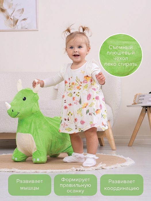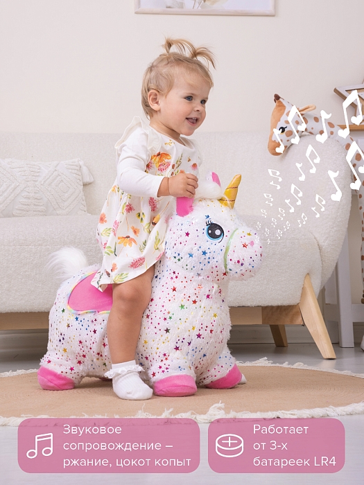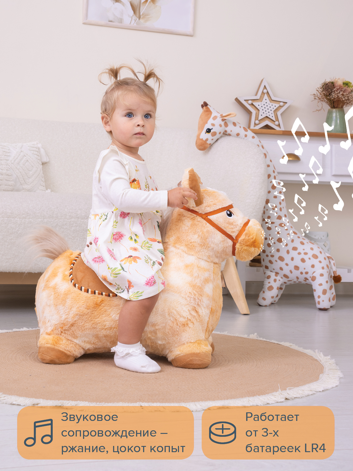 Благодаря удобной форме игрушки, малыш сможет комфортно на ней разместиться держась за ушки и прыгать, отталкиваясь ногами.